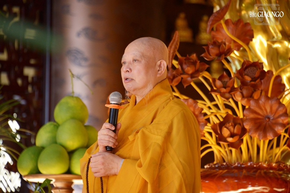 Dịp này, Hòa thượng Thích Lệ Trang, trụ trì chùa Huê Nghiêm đã có thời pháp thoại về ý nghĩa của Tam quy và ngũ giới đối với người Phật tử tại gia, trong niềm hoan hỷ và chí thành của người tham dự.