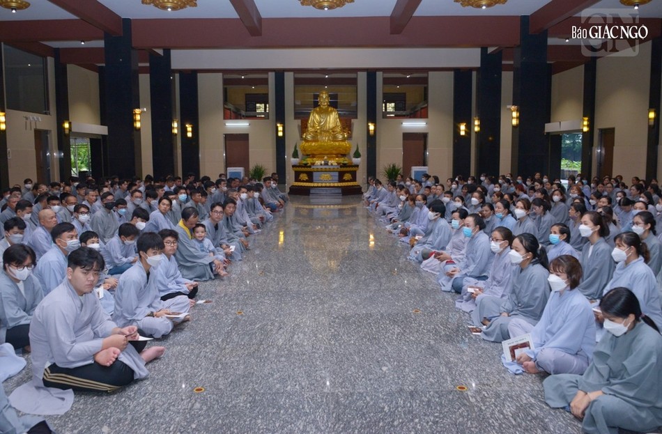 GNO - Sáng rằm tháng 5-Quý Mão (2-7-2023), gần 1.000 người đã đến chùa Huê Nghiêm, TP.Thủ Đức (TP.HCM) phát nguyện quy y Tam bảo theo lịch sinh hoạt định kỳ của đạo tràng Pháp Hoa.