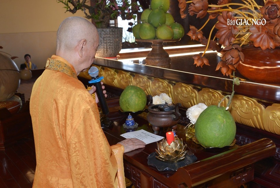 Dịp này, Hòa thượng Thích Lệ Trang, trụ trì chùa Huê Nghiêm đã có thời pháp thoại, nói về vai trò của Tam bảo trong đời sống tâm linh và ý nghĩa thiết thực của 5 giới căn bản trong đời sống đạo đức đưa đến sự hạnh phúc cho người Phật tử tại gia.