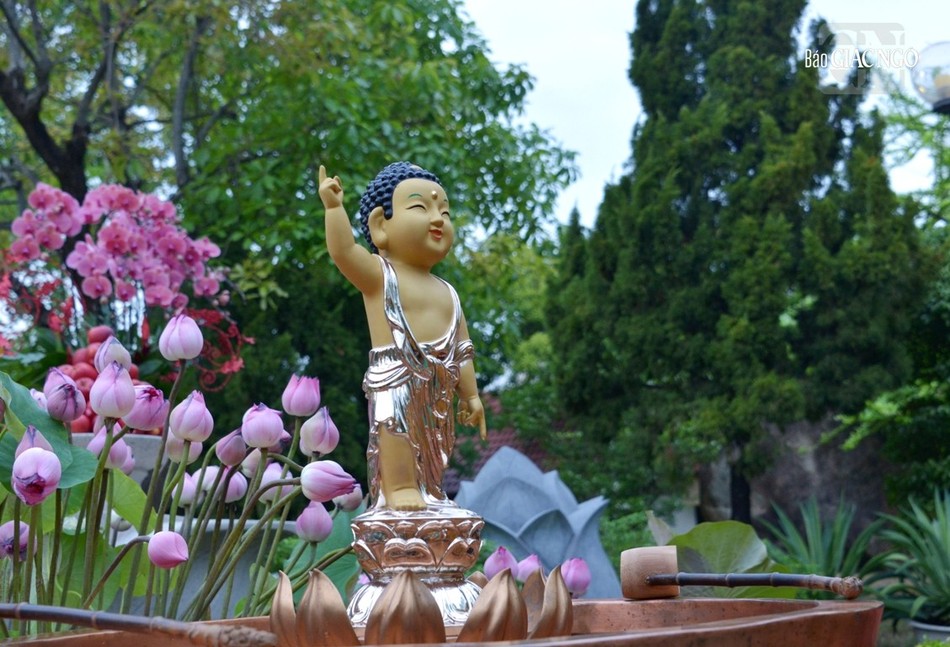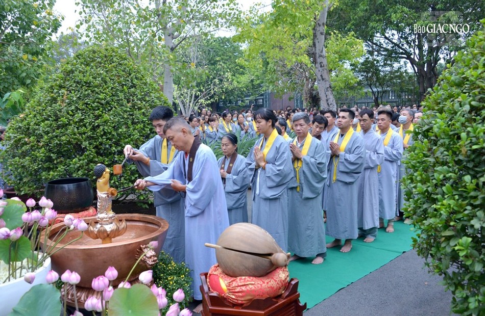 GNO - Sáng nay 7- 4 ÂL (14-5-2024), đông đảo Phật tử đã về chùa Huê Nghiêm tham dự lễ Tắm Phật tại khu vực tôn tượng Đản sanh lộ thiên trong khuôn viên chùa Huê Nghiêm, TP.Thủ Đức.