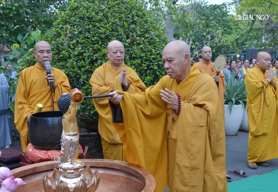 Hòa thượng cũng đã hướng dẫn nghi thức Tắm Phật truyền thống và chư Tăng cùng Phật tử tuần tự thực hiện trong không khí trang nghiêm, thành kính nhân kỷ niệm ngày Đức Phật đản sanh Phật lịch 2568.