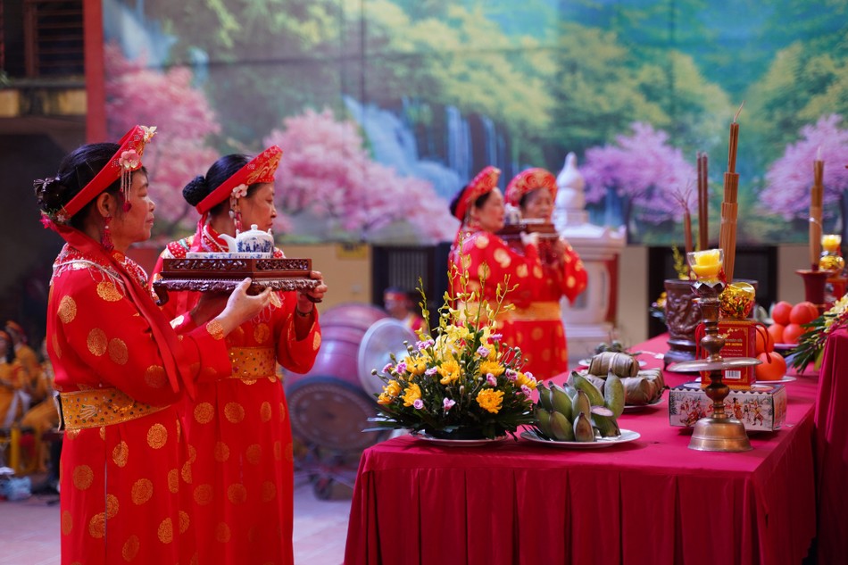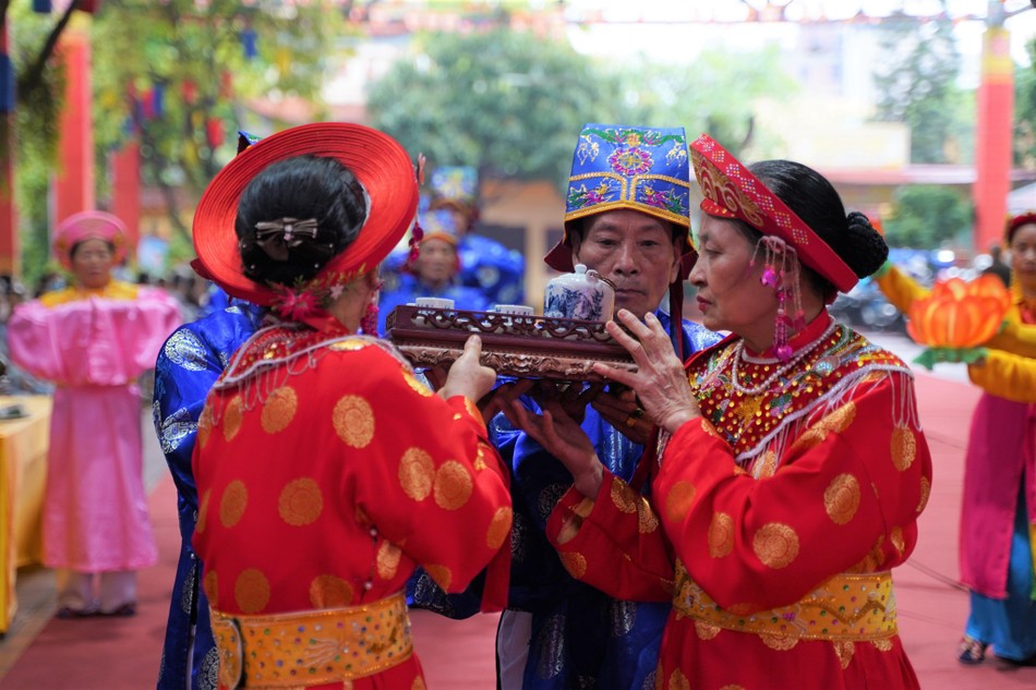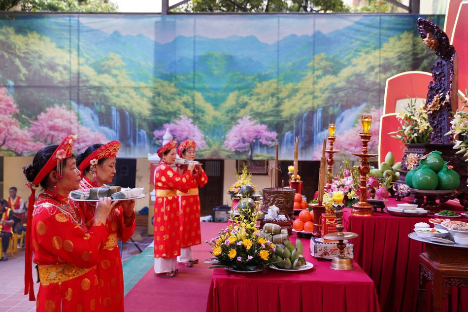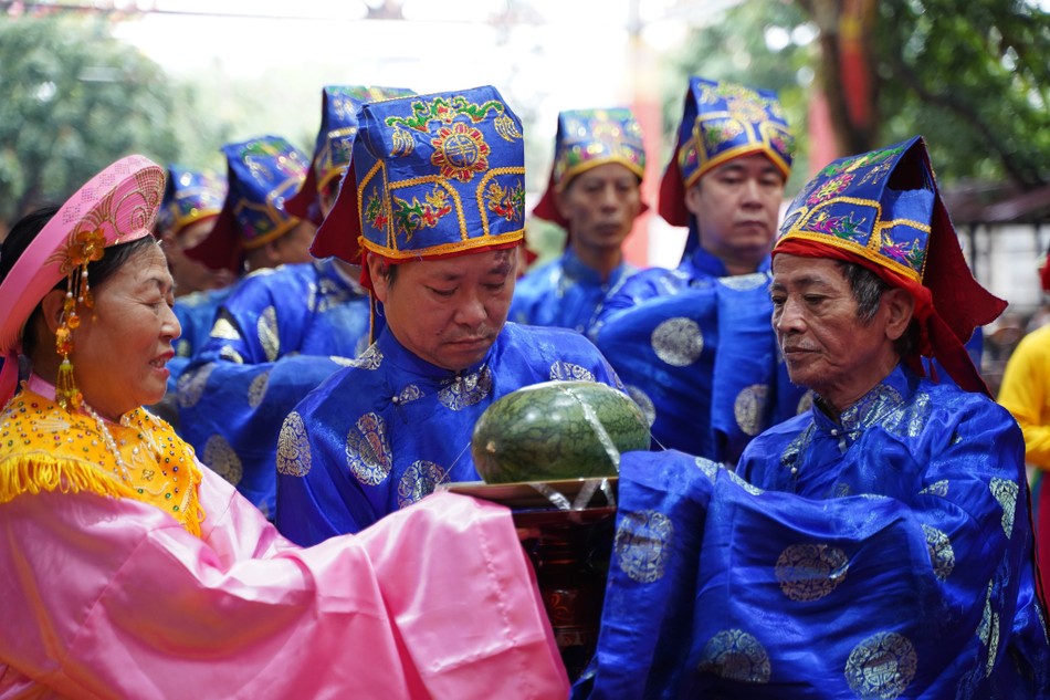 Theo đó, các bô lão cư dân Bằng Liệt theo từng đội tế nam, tế nữ thực hiện nghi dâng lục cúng, gồm các phẩm vật hương, hoa, đăng, trà, quả, thực; cùng 3 món không thể thiếu đó là dưa hấu và bánh chưng, bánh dày.