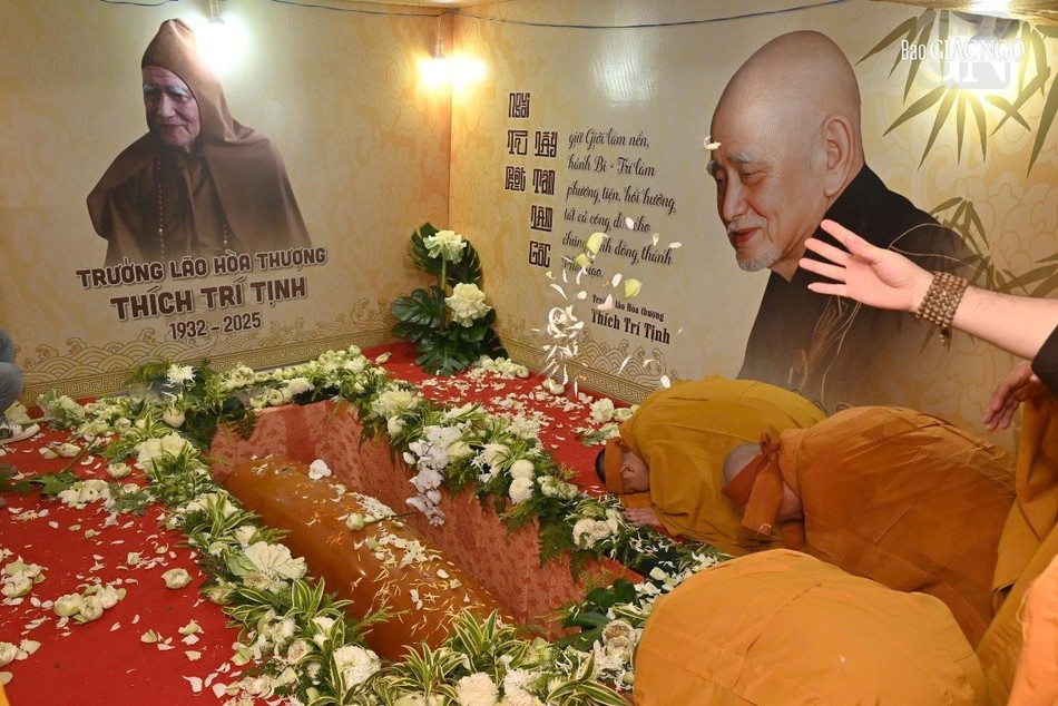 Sau Lễ truy niệm của Giáo hội, vào 6 giờ sáng nay, 12-10, kim quan Trưởng lão Hòa thượng được phụng tống rời chùa Vĩnh Nghiêm (P.Xuân Hòa), về Linh Phong Thiền Uyển (P.Vũng Tàu, TP.HCM), nhập tháp trong khuôn viên của thiền uyển này.