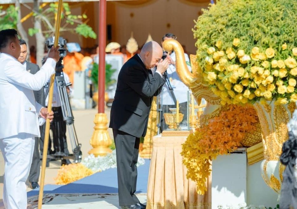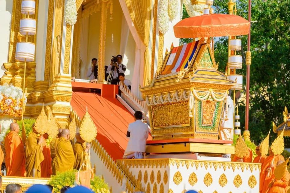 Quốc vương Norodom Sihamuni thân lâm cầu nguyện và châm ngọn lửa trà-tỳ theo nghi thức đặc biệt của Vương quốc Campuchia.