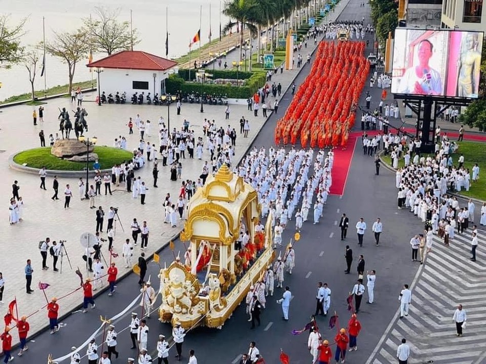 Theo đó, nghi lễ được cử hành bắt đầu từ 4g sáng cho đến 20g30 hôm nay, 3-5, liên tục với các nghi thức theo quy định của Hoàng gia đặc biệt bày tỏ lòng tôn kính đối với bậc lãnh đạo tâm linh tối cao của đất nước Campuchia.