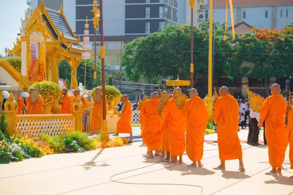 Phái đoàn GHPGVN do Trưởng lão Hoà thượng Viên Minh, Phó Pháp chủ Hội đồng Chứng minh dẫn đầu đã quang lâm chứng dự, cầu nguyện tại đài hỏa táng được xây dựng đặc biệt trong khuôn viên chùa Botum, thủ đô Phnôm Pênh, Campuchia.
