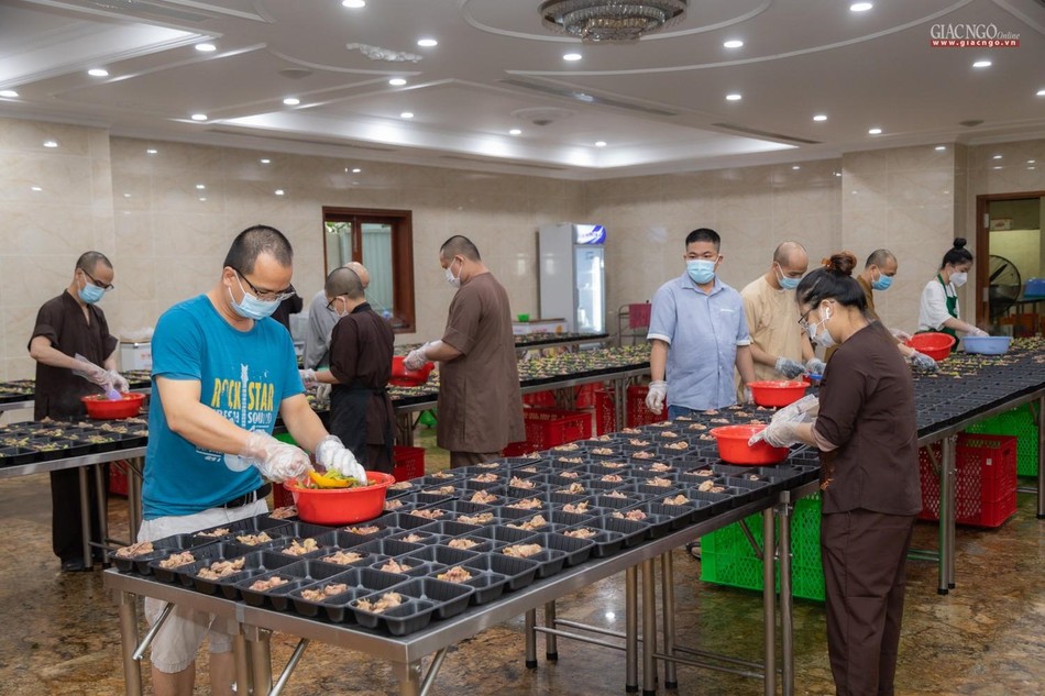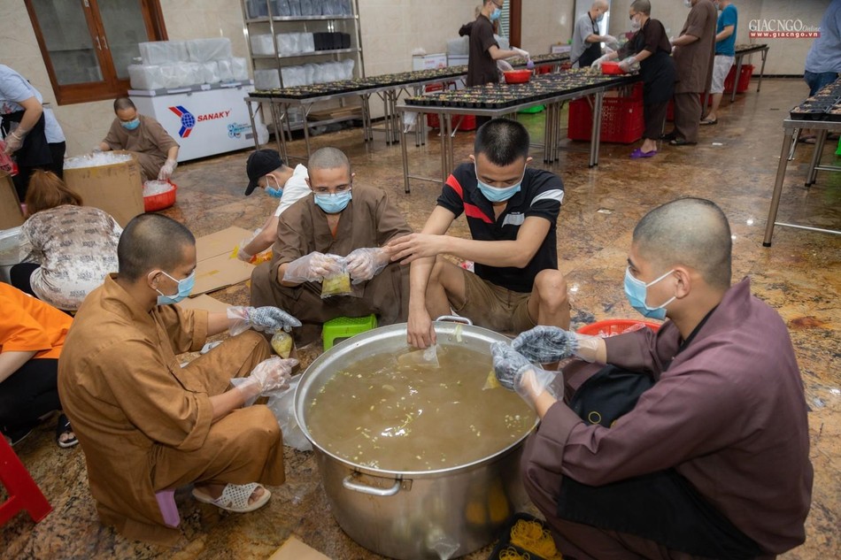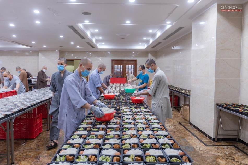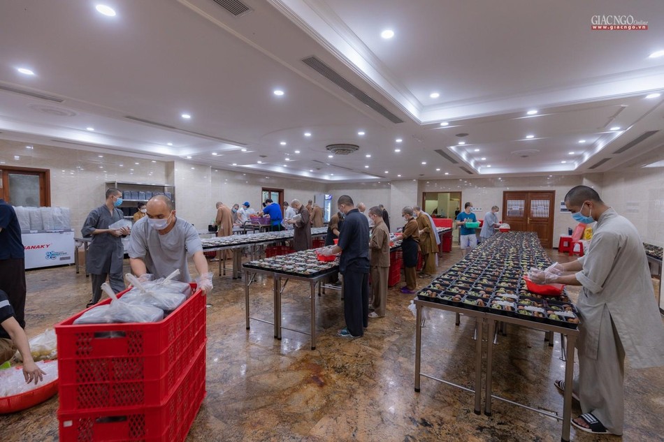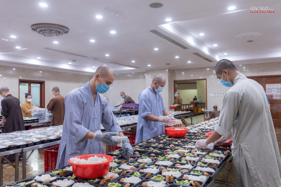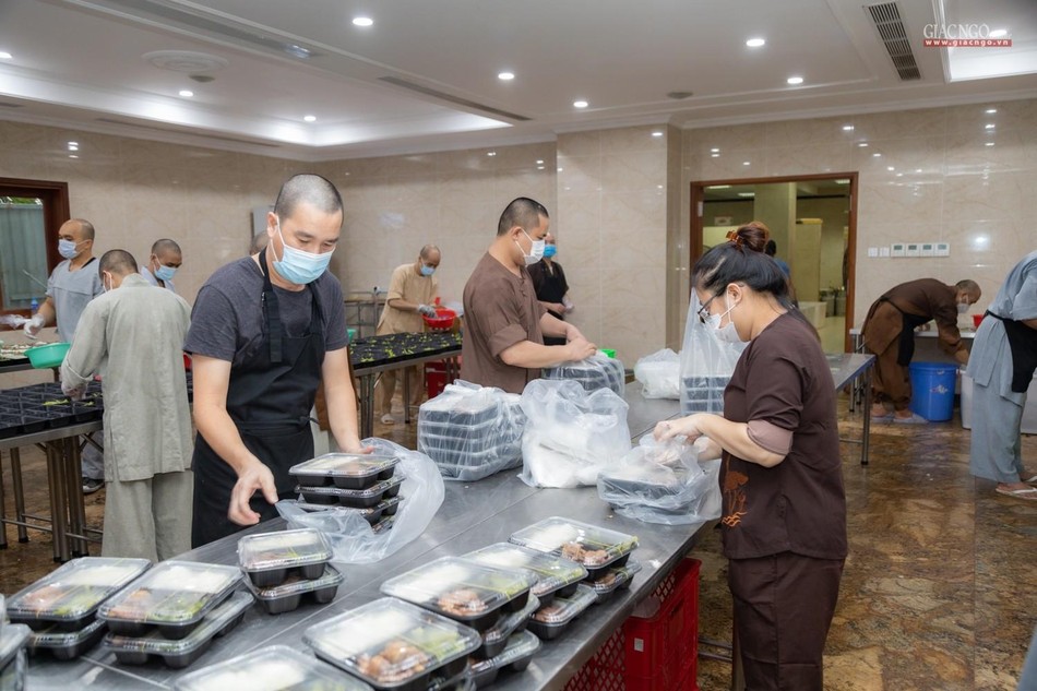 Ngày 14-7, bếp ăn thiện nguyện chùa Vĩnh Nghiêm bắt đầu đi vào hoạt động. Được thực hiện bởi Ban Từ thiện - Xã hội GHPGVN TP.HCM, phối hợp cùng chùa Vĩnh Nghiêm (quận 3) và nhóm từ thiện Chia sẻ - Sharing, nhóm thiện nguyện Mãn Tự, mỗi ngày, bếp ăn thiện nguyện chùa Vĩnh Nghiêm nấu khoảng 10.000 suất ăn hỗ trợ lực lượng y tế tại các bệnh viện điều trị Covid-19, lực lượng tuyến đầu và bệnh nhân, bà con đang cách ly y tế.