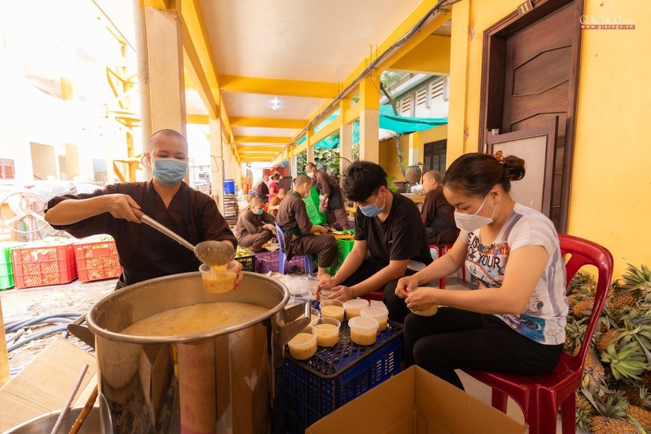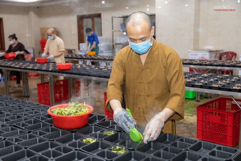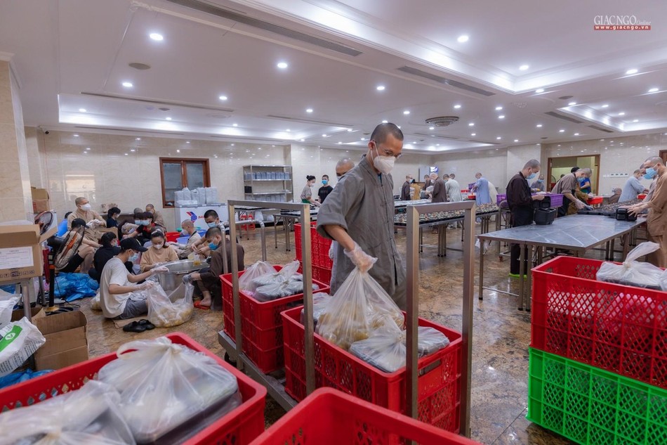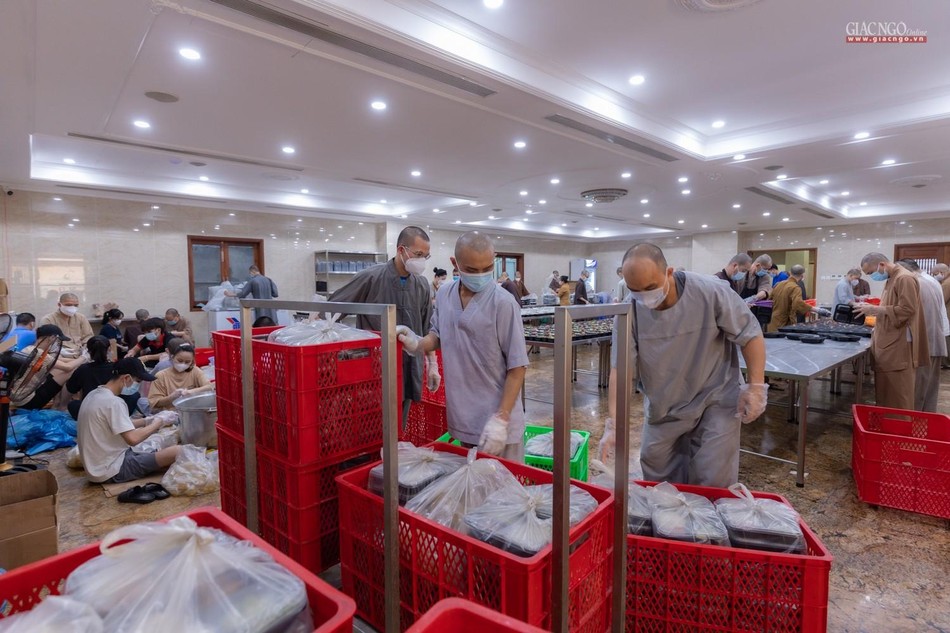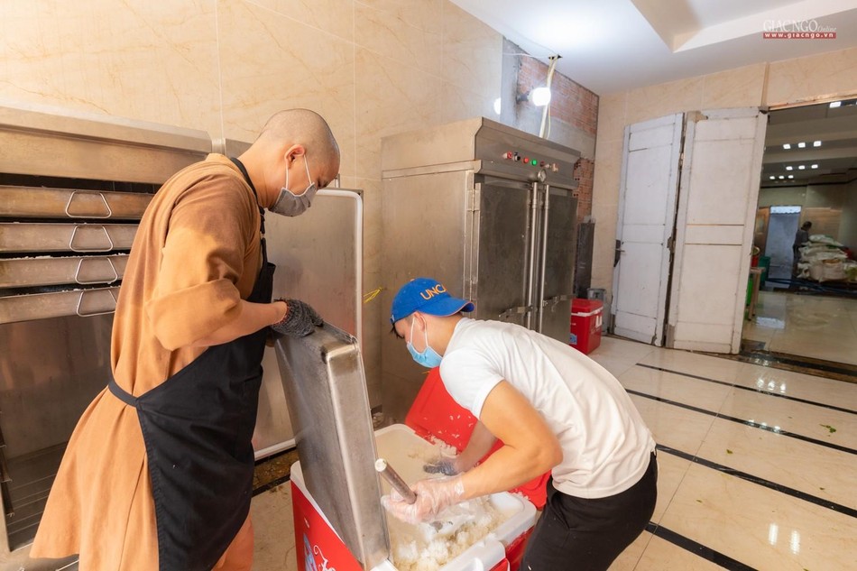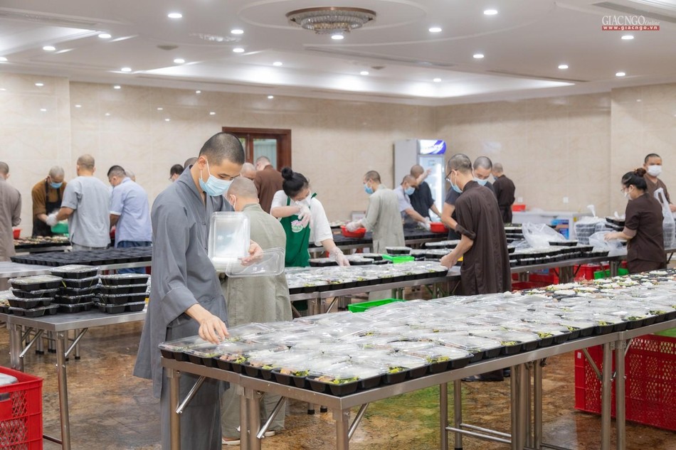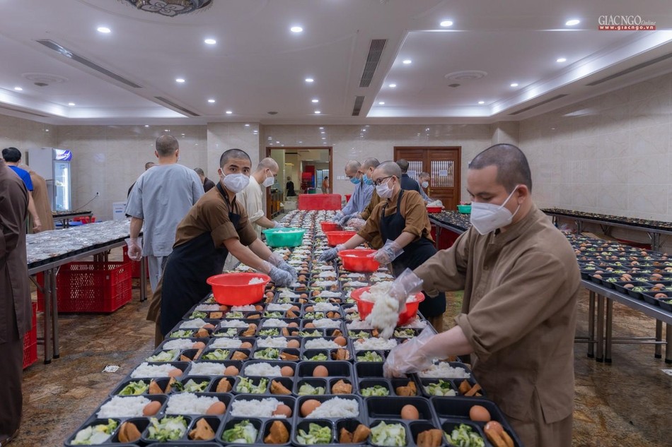 Ngày 14-7, bếp ăn thiện nguyện chùa Vĩnh Nghiêm bắt đầu đi vào hoạt động. Được thực hiện bởi Ban Từ thiện - Xã hội GHPGVN TP.HCM, phối hợp cùng chùa Vĩnh Nghiêm (quận 3) và nhóm từ thiện Chia sẻ - Sharing, nhóm thiện nguyện Mãn Tự, mỗi ngày, bếp ăn thiện nguyện chùa Vĩnh Nghiêm nấu khoảng 10.000 suất ăn hỗ trợ lực lượng y tế tại các bệnh viện điều trị Covid-19, lực lượng tuyến đầu và bệnh nhân, bà con đang cách ly y tế.