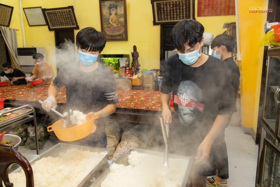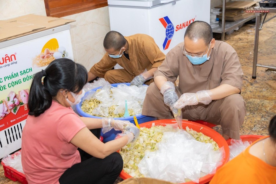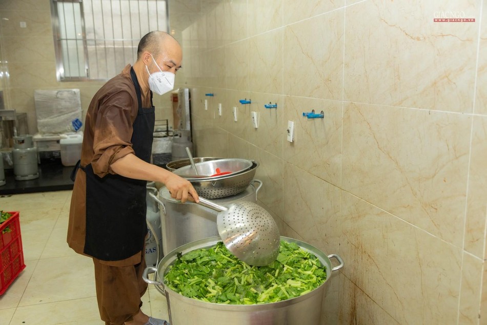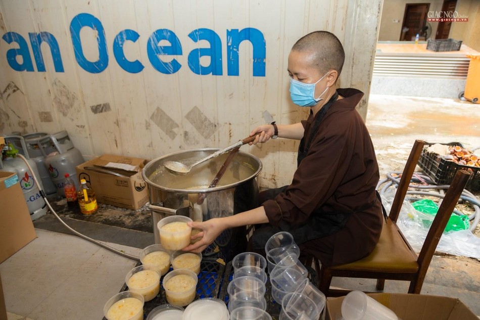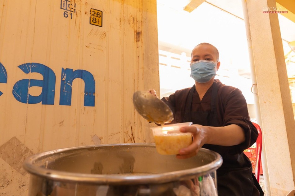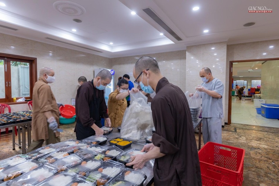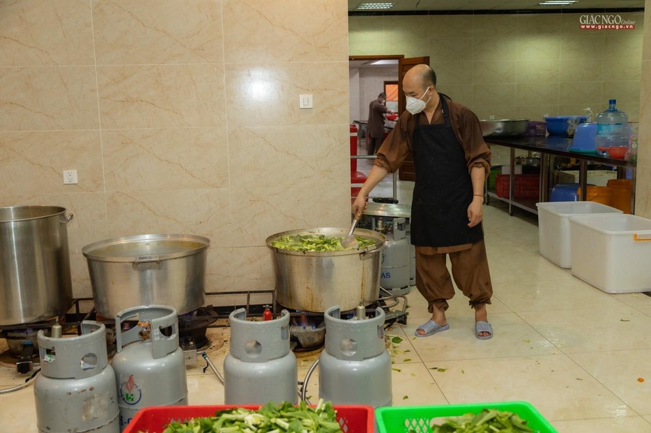 “Theo chỉ dạy của Trưởng lão Hòa thượng Đệ nhất Phó Pháp chủ kiêm Giám luật Hội đồng Chứng minh, Trưởng ban Trị sự GHPGVN TP cũng như xuất phát từ tình hình thực tế, ngay từ những ngày đầu khi đại dịch tái bùng phát tại thành phố, Ban Từ thiện - Xã hội Phật giáo TP.HCM đã nhanh chóng thiết lập bếp ăn dã chiến nhằm hỗ trợ một cách thiết thực nhất cho công tác phòng chống dịch của thành phố.”, Thượng tọa Thích Thanh Phong, Phó ban Trị sự kiêm Trưởng ban Từ thiện - Xã hội Phật giáo TP.HCM, trụ trì chùa Vĩnh Nghiêm cho biết.