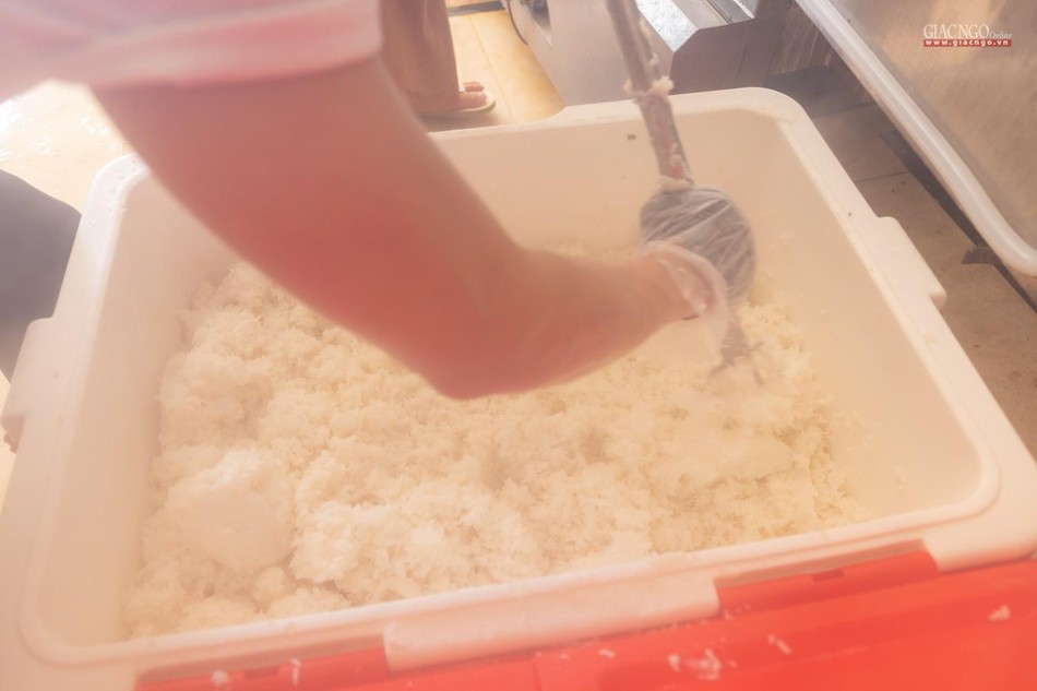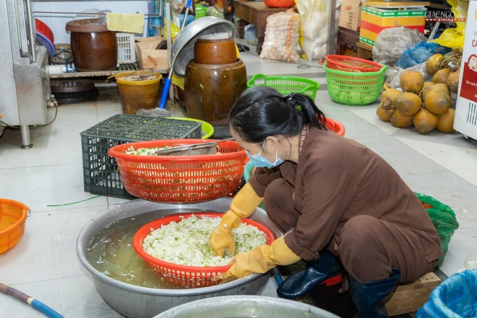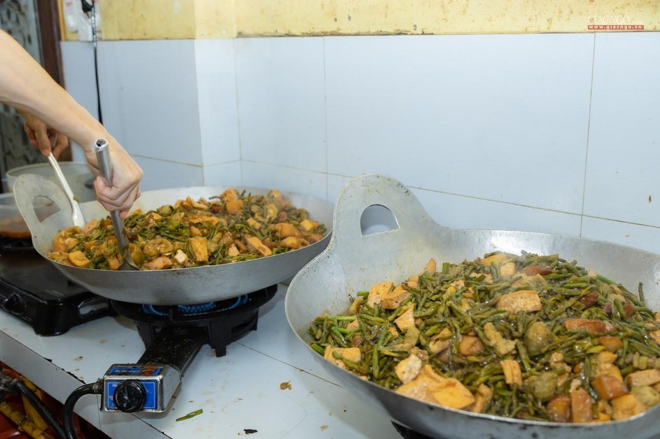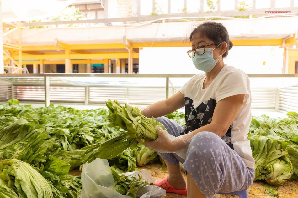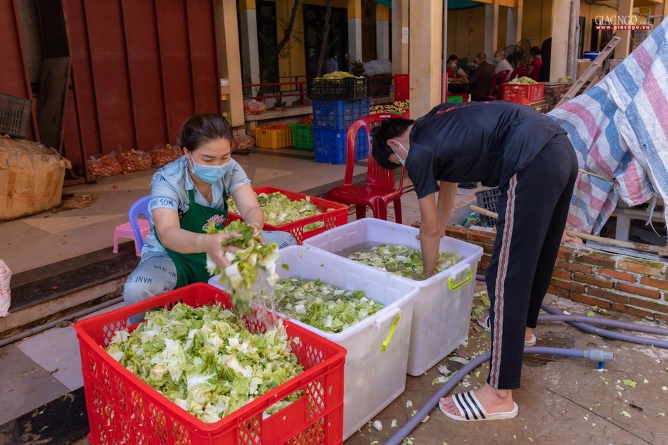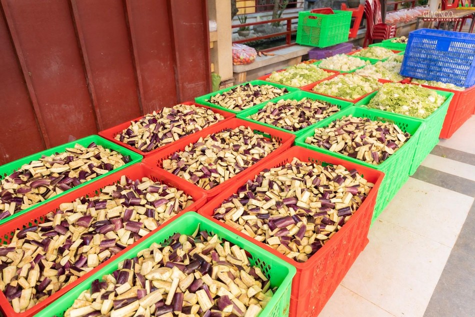 Dựa trên số lượng nguyên liệu, rau củ tiếp nhận hàng ngày, người phụ trách chính của các khâu sẽ tính toán phân phối thực đơn phù hợp. Bếp ăn sử dụng khoảng 1,2 tấn gạo mỗi ngày.