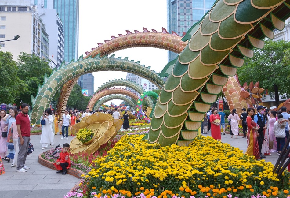 Được biết, đường hoa Nguyễn Huệ Tết Giáp Thìn mở cửa đón khách đến 21 giờ ngày 14-2 (mùng 5 Tết).