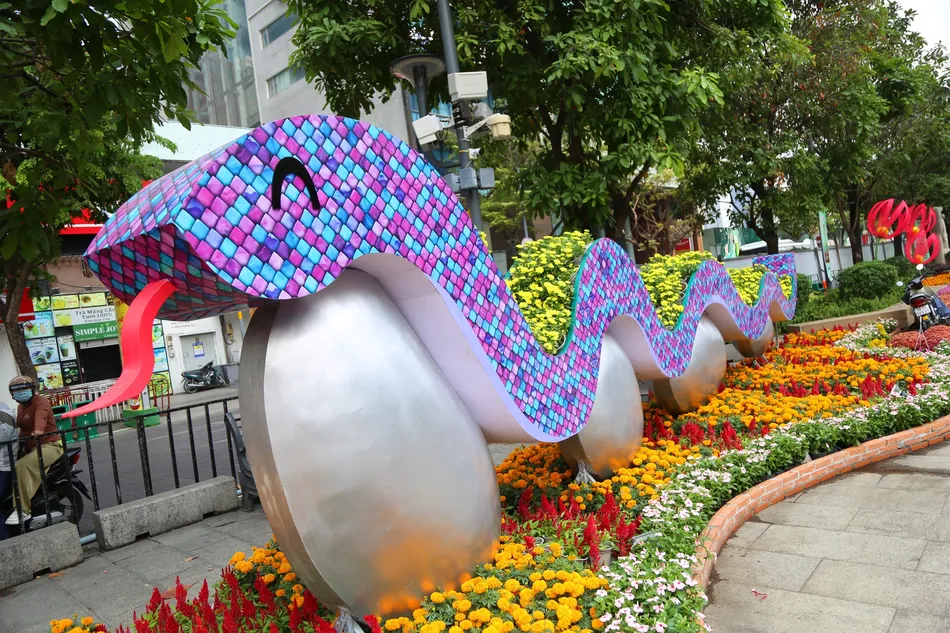 Toàn bộ đường hoa có khoảng 90 tạo hình linh vật con rắn được thể hiện với đa dạng sắc thái và hình dáng, phần lớn tập trung sau cổng chào. Mỗi linh vật có tạo hình riêng biệt, mang nét dễ thương, duyên dáng.