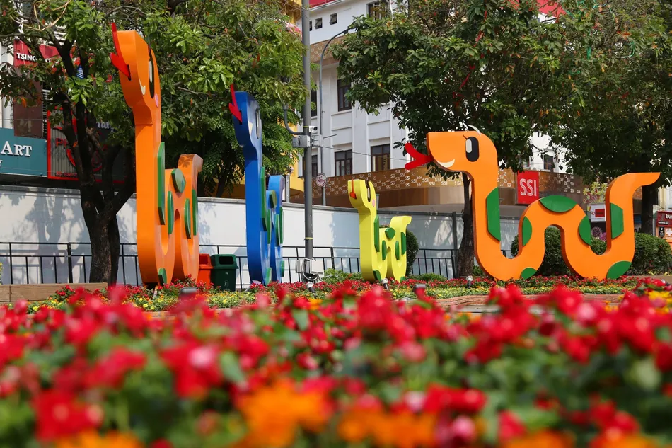 Đường hoa Tết Ất Tỵ 2025 dài 700m, với chủ đề: "Non sông gấm hoa, vui xuân thái hòa", gồm 3 phân đoạn nối tiếp nhau: "Kết đoàn", "Chuyển mình" và "Phát triển", nhằm kỷ niệm 50 năm thống nhất đất nước, thể hiện những chặng đường lịch sử, gian lao của dân tộc.