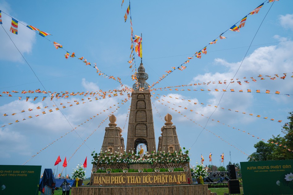 GNO - Được làm hoàn toàn từ tre, lễ đài Phật đản của Phật giáo H.Triệu Phong không chỉ mang đến một không gian quen thuộc, đầy sắc màu chốn làng quê mà còn truyền tải thông điệp về bảo vệ môi trường đến người dân, tín đồ Phật tử trong mùa Phật đản năm nay.