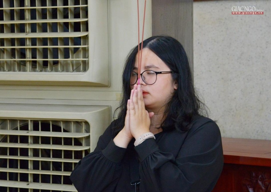 Phật tử thành kính tham dự thời tụng kính sớm tại chùa Huê Nghiêm - TP.Thủ Đức |