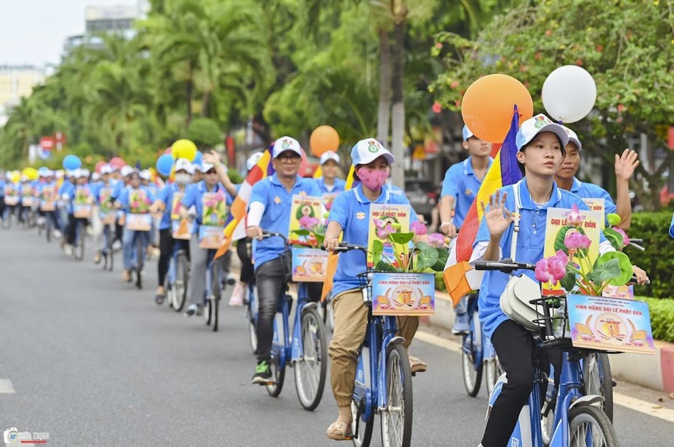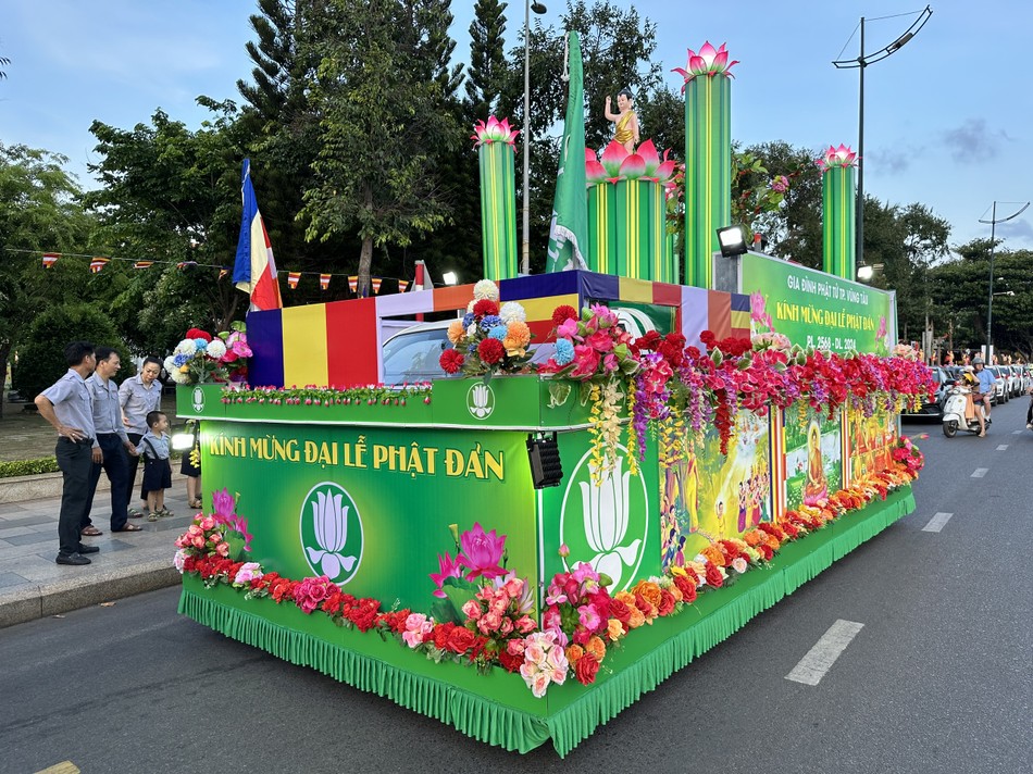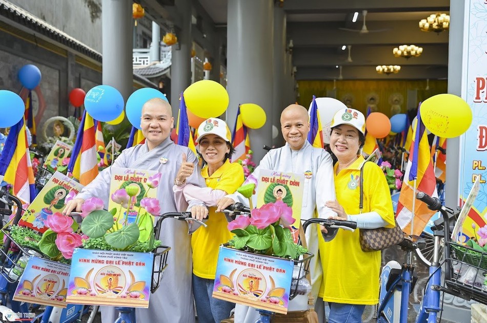 Cũng trong ngày, Ban Trị sự GHPGVN TP.Vũng Tàu tổ chức đoàn diễu hành xe đạp hoa, xích-lô hoa diễu hành từ chùa Vạn Phước đến lễ đài chính của Phật giáo tỉnh tại Trung tâm Văn hóa TP.Vũng Tàu, lan tỏa nét tươi vui, hân hoan đến đồng bào, Phật tử nhân mùa kỷ niệm Khánh đản của Đức Phật.