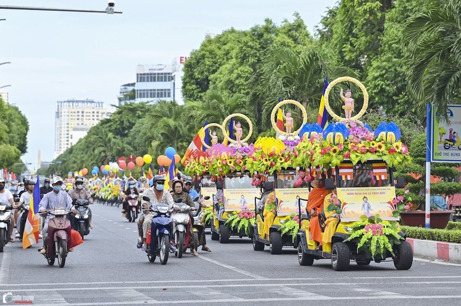 Hình ảnh đoàn diễu hành xe ô tô hoa, xe đạp hoa kính mừng Đại lễ Phật đản: