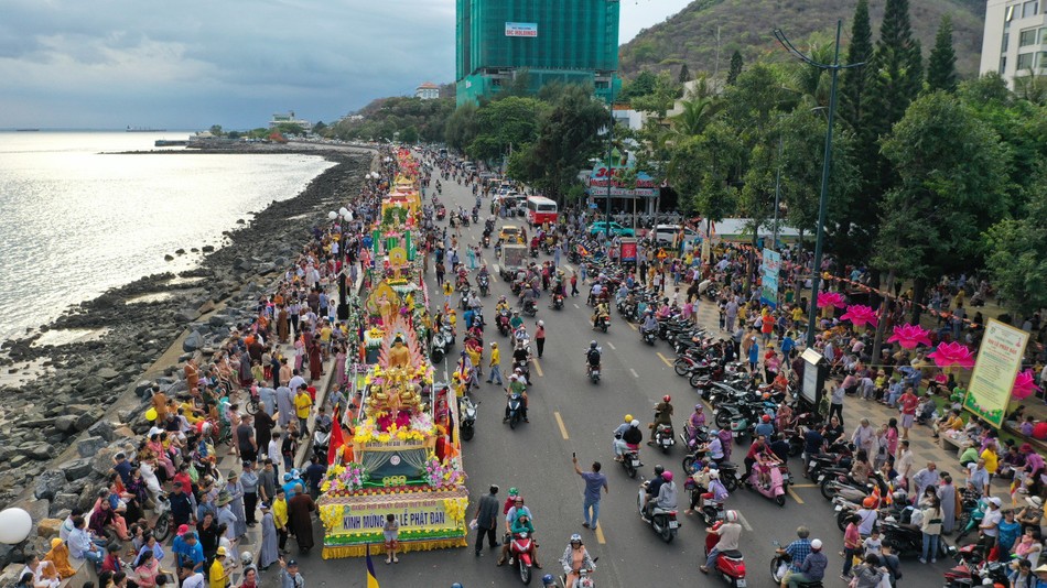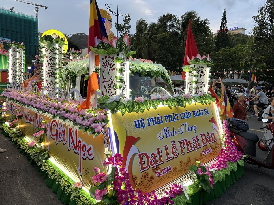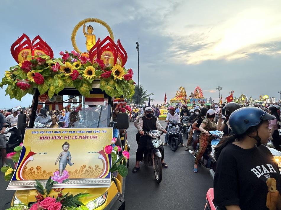 Theo đó, Ban Trị sự GHPGVN tỉnh Bà Rịa - Vũng Tàu đã tổ chức đoàn 40 chiếc xe ô tô hoa, diễu hành trên các cung đường thuộc TP.Vũng Tàu, kính mừng Đại lễ Phật đản Phật lịch 2568.