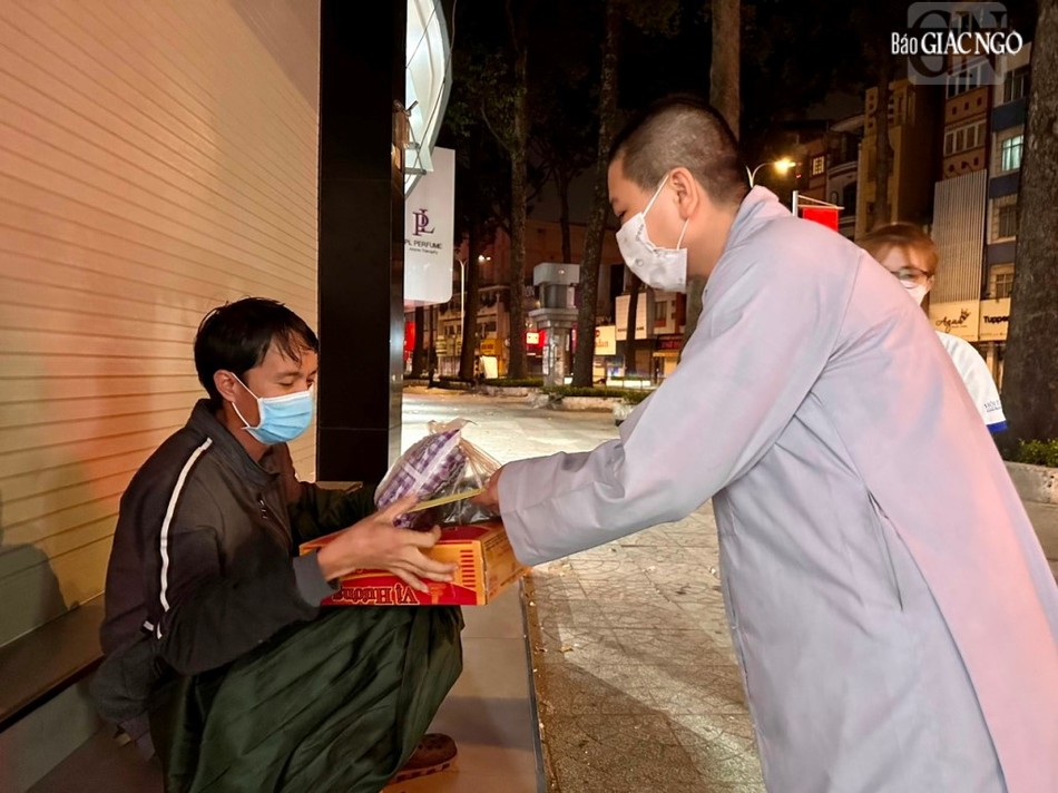 Theo đó, Quan Âm tu viện đã tặng quà Tết cho người vô gia cư, công nhân vệ sinh công cộng tại các tuyến đường quận 1, quận Phú Nhuận và quận 10. Mỗi phần quà bao gồm tiền mặt 200.000 đồng, bánh ngọt, mì gói, bánh chưng do Quan Âm tu viện tự gói, mong bà con có Tết sum vầy, sung túc hơn.