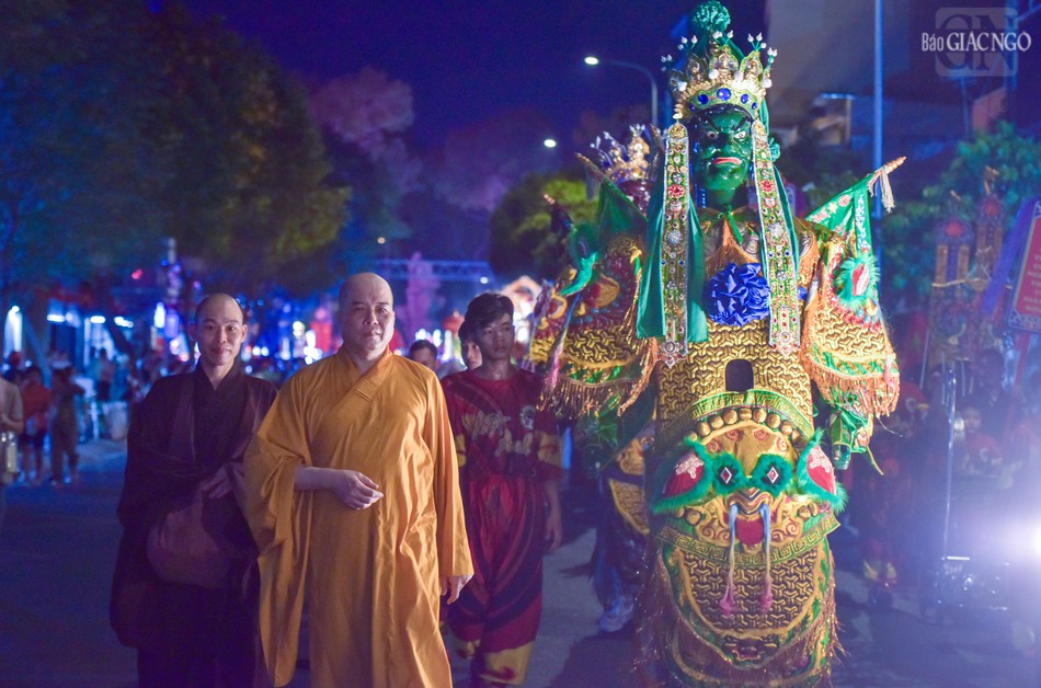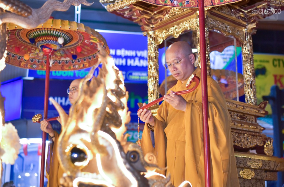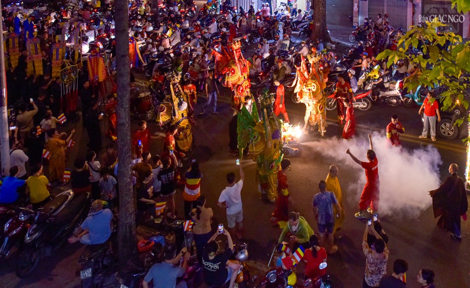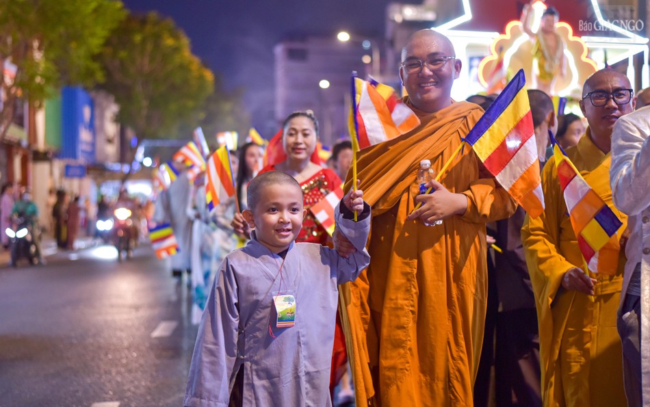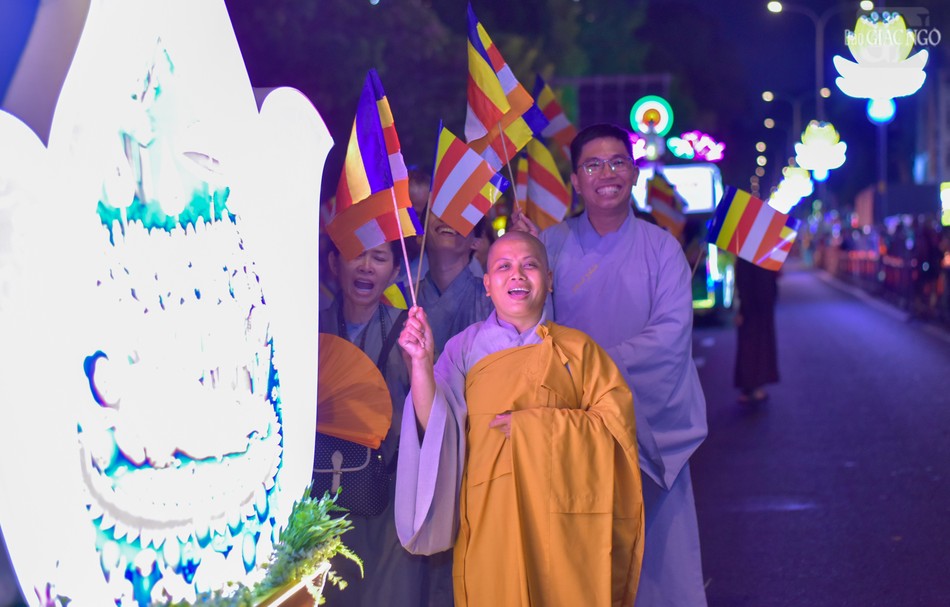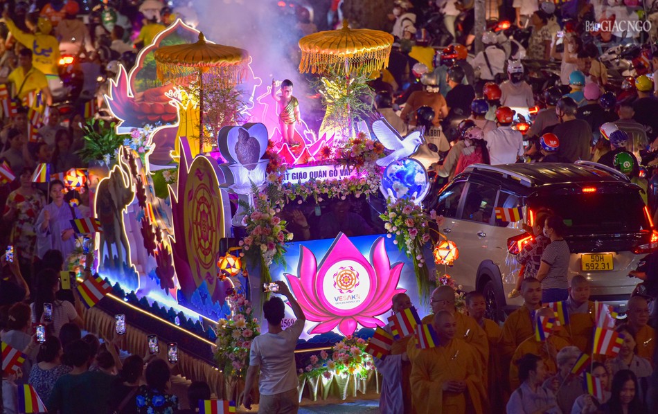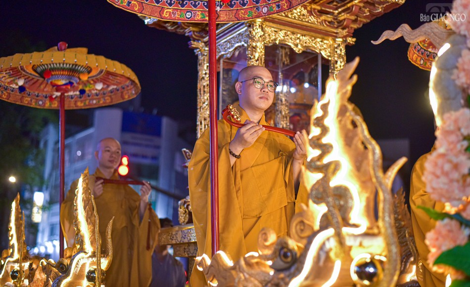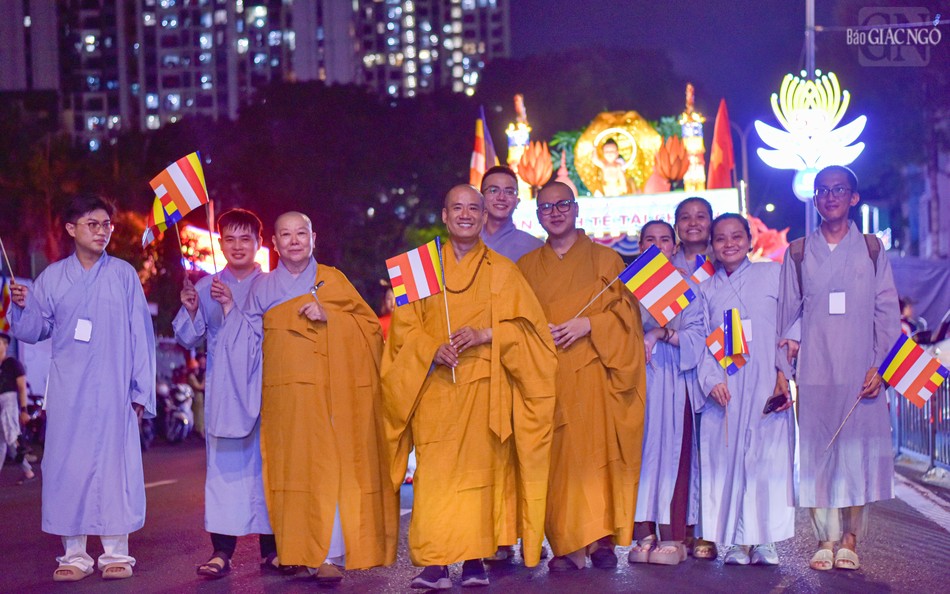 Theo lộ trình cung rước Đức Phật đản sinh từ đường Sư Vạn Hạnh (tổ đình Ấn Quang) - Ngô Gia Tự - đường Điện Biên Phủ - Cao Thắng - đường 3/2 - vào cổng chính Việt Nam Quốc Tự - nơi lễ đài chính của Phật giáo TP.HCM, đoàn xe hoa đã tạo nên dấu ấn riêng với sắc màu thiêng liêng của đêm tháng Tư khánh đản Đức Từ Phụ Thích Ca Mâu Ni. Sắc màu cùng hòa vào không khí thành kính, trang nghiêm, góp phần lan tỏa hình ảnh đẹp, truyền thông điệp từ bi, trí tuệ, bao dung, hòa bình đến cộng đồng của mùa Phật đản an lành trong mỗi trái tim người con Phật.