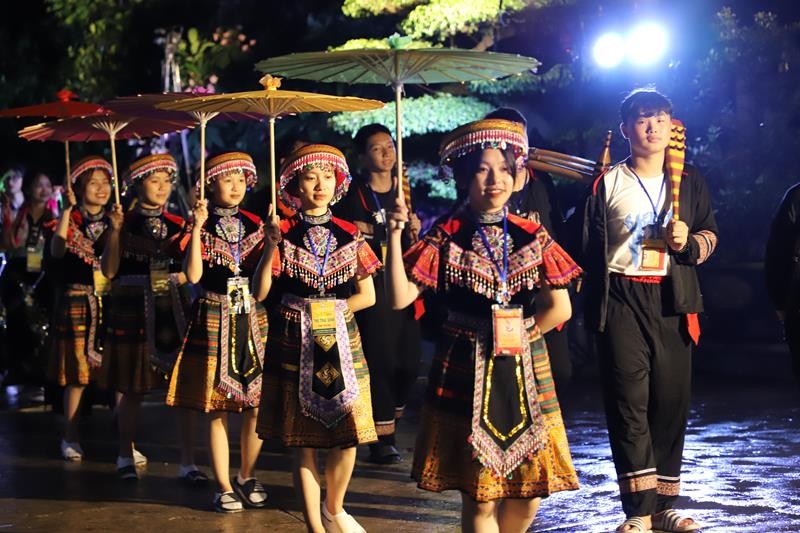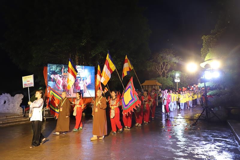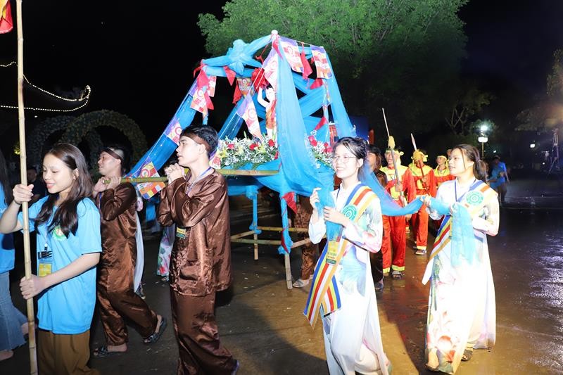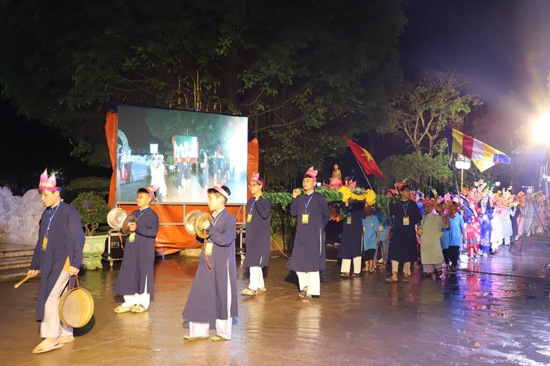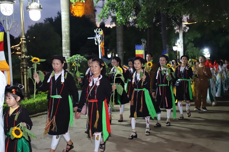 Các đoàn rước kiệu diễu hành thuộc 24 tỉnh thành khu vực phía Bắc với những trang phục đầy màu sắc rực rỡ cờ hoa tươi vui trong sự chào đón của 2.000 trại sinh.