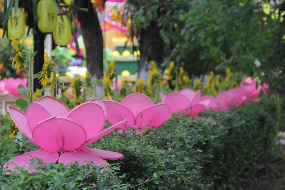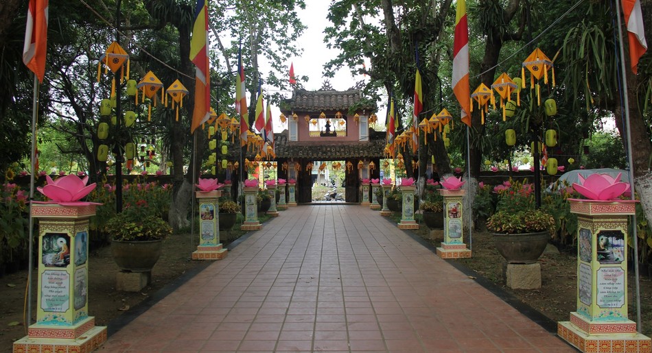 GNO - Vào mùa Phật đản, các chùa, tư gia và khắp các nẻo đường của xứ Huế đều trang trí cờ hoa, đèn lồng làm cho cảnh trí trở nên thiền vị.