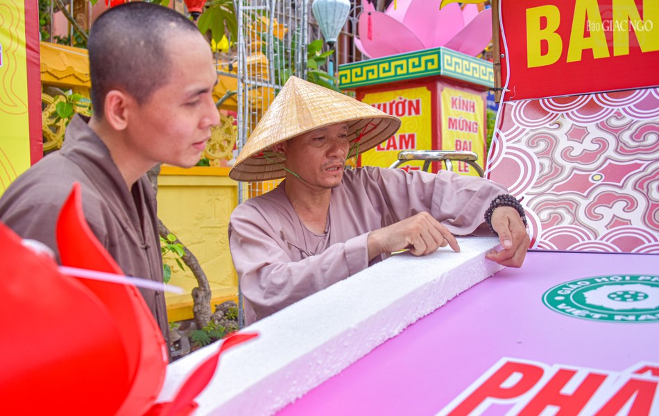 Cùng ngắm những khoảnh khắc chư Tăng, Phật tử làm thuyền hoa do phóng viên Báo Giác Ngộ ghi nhận: