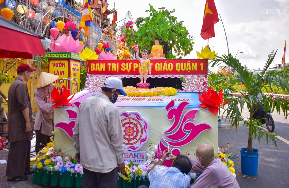 Được biết, chư Tăng, Phật tử Q.1 cũng đang ráo riết hoàn thiện trang trí xe hoa để tham gia diễu hành cùng với Ban Trị sự GHPGVN TP.HCM vào tối 13-4 Âm lịch và diễu hành thuyền hoa trên địa bàn Q.1 vào tối 14-4 Âm lịch.