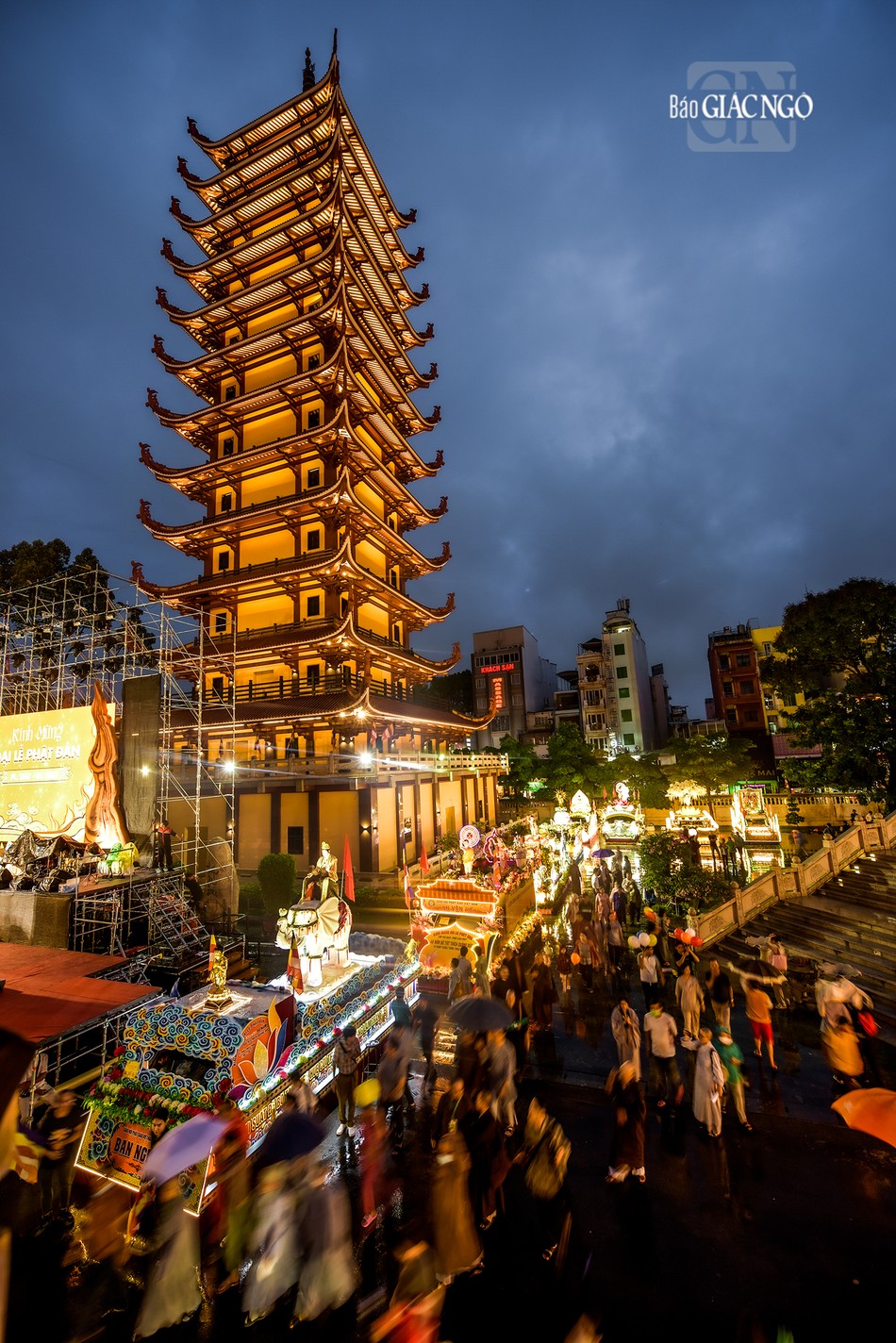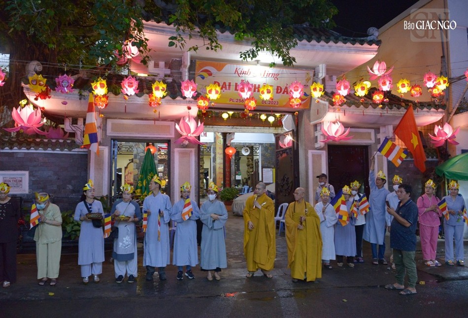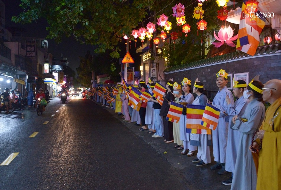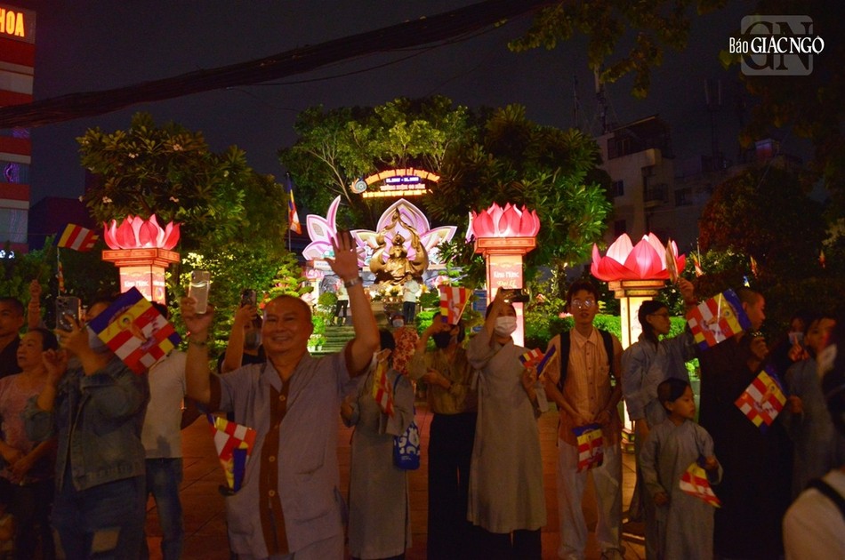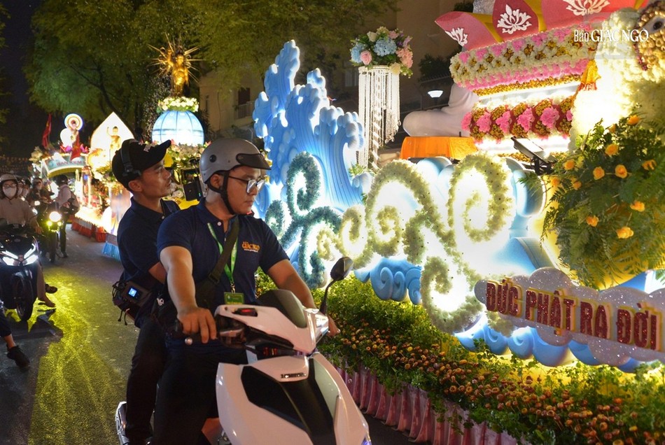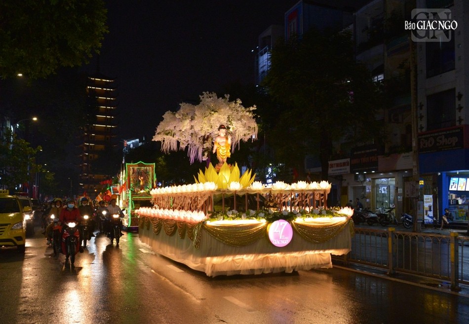 GNO - Đoàn xe hoa đầy sắc màu xuất phát từ lễ đài chính của Phật giáo TP.HCM - Việt Nam Quốc Tự diễu hành đi qua các tuyến phố trong tối 9-4-Quý Mão kính mừng Đức Thế Tôn đản sinh và tưởng niệm 60 năm ngày Bồ-tát Thích Quảng Đức vị pháp thiêu thân.