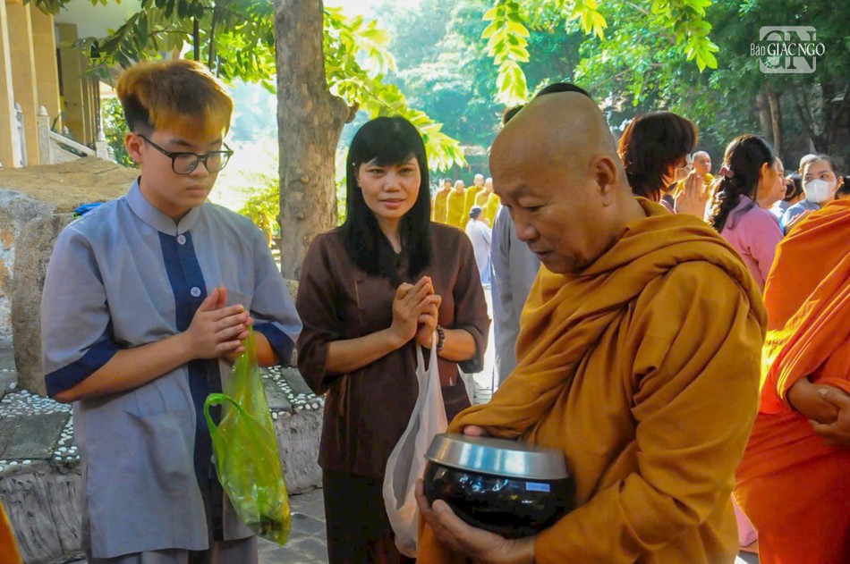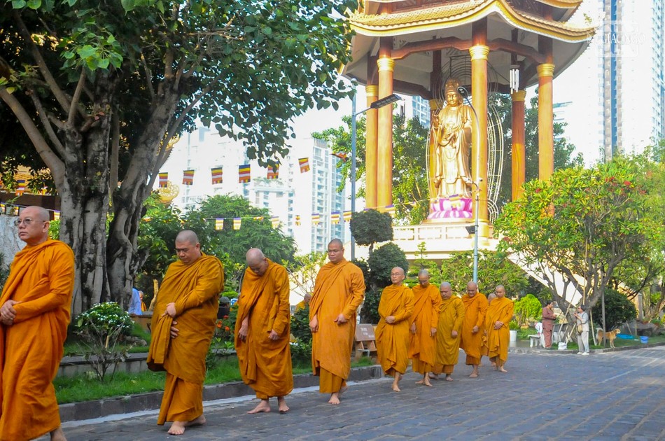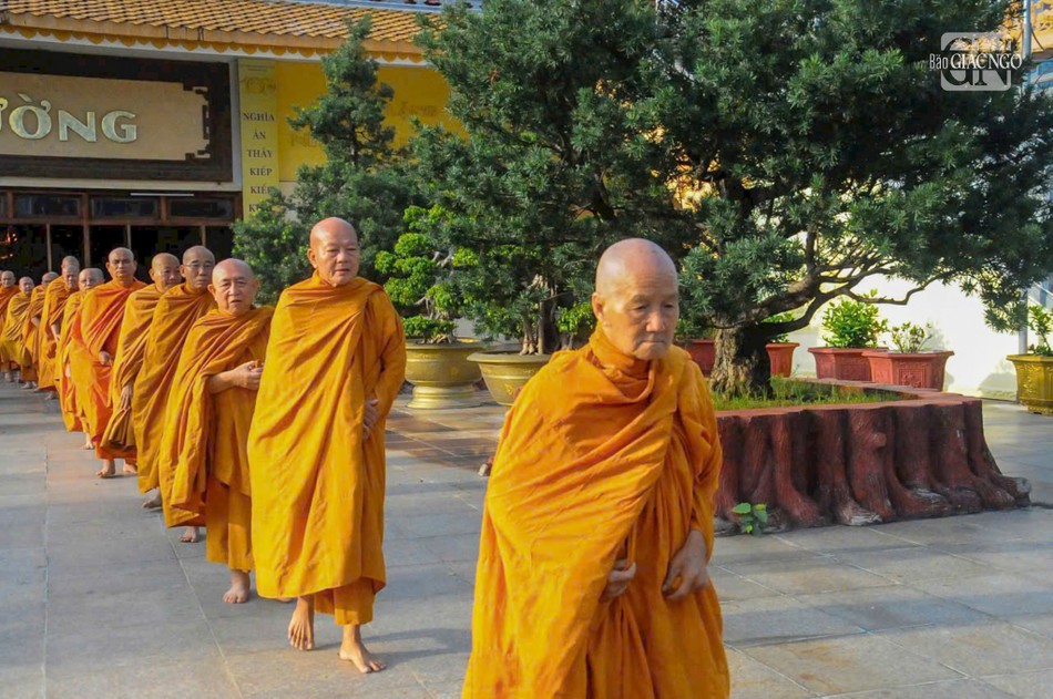 Dưới sự hướng dẫn của chư Trưởng lão, Tăng Ni đã từng bước khoan thai nhẹ nhàng trì bình khất thực, gợi nhắc công hạnh thanh bần giản dị của đời sống tu hành, qua đó phát khởi tâm lành, tạo nguồn an lạc cho tự thân.