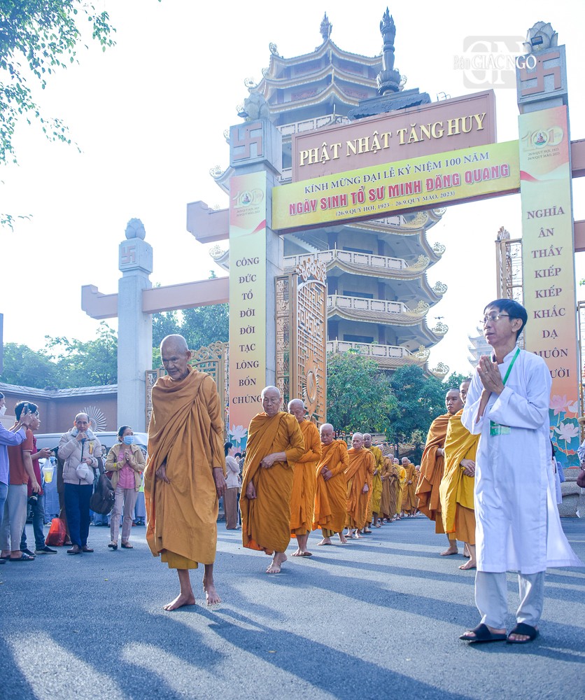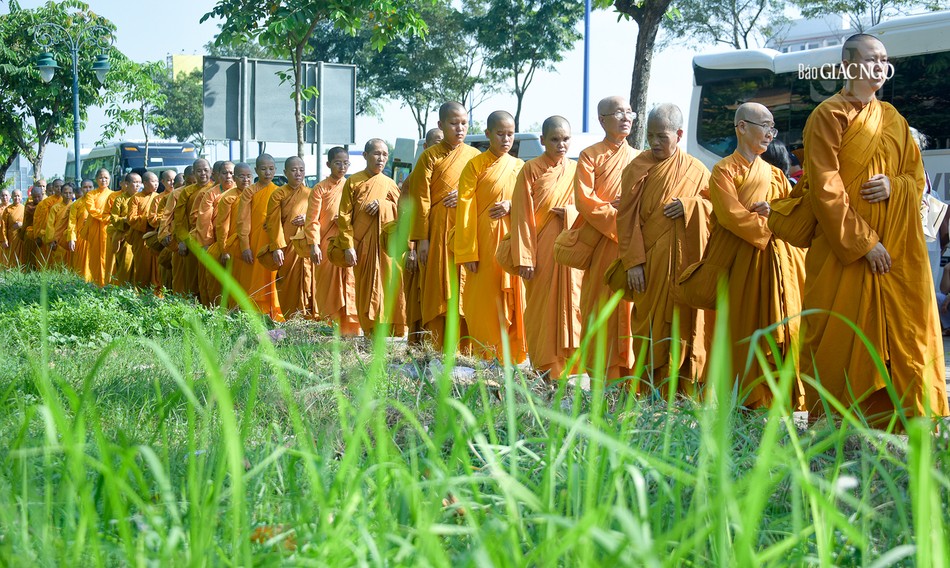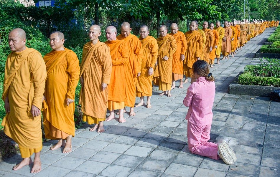 GNO - Đoàn khất thực do Trưởng lão Hòa thượng Giác Tường, Ủy viên Thường trực Hội đồng Chứng minh, Giáo phẩm Chứng minh hệ phái Khất sĩ dẫn đầu; cùng với sự tham dự của hơn 500 Tăng Ni hệ phái, diễn ra trong khuôn viên pháp viện Minh Đăng Quang - TP.Thủ Đức (TP.HCM) sáng 9-11-2023.