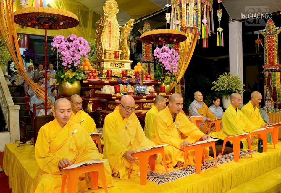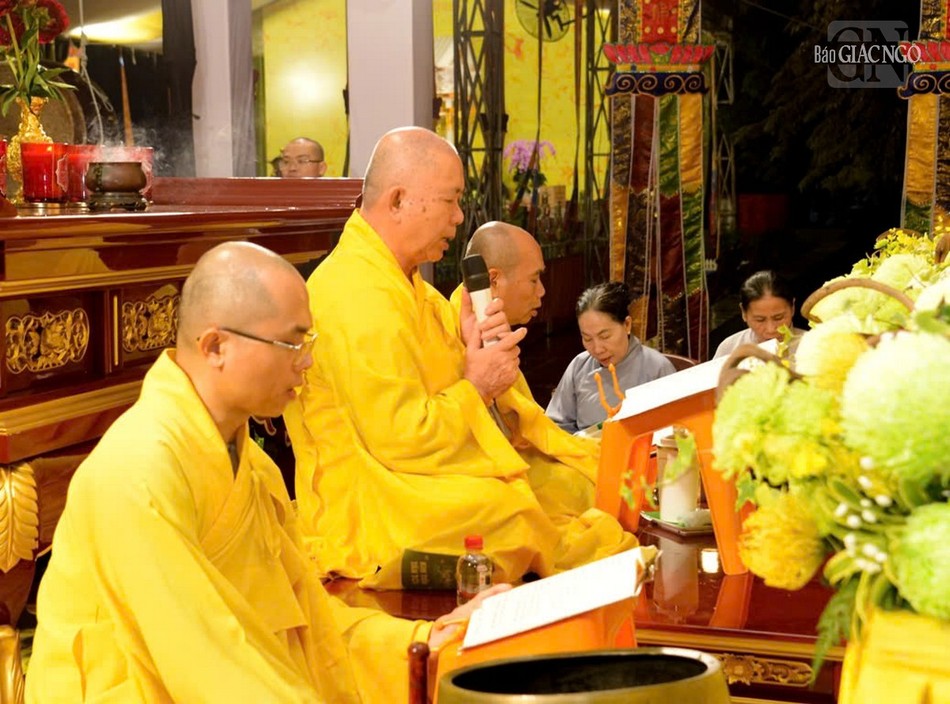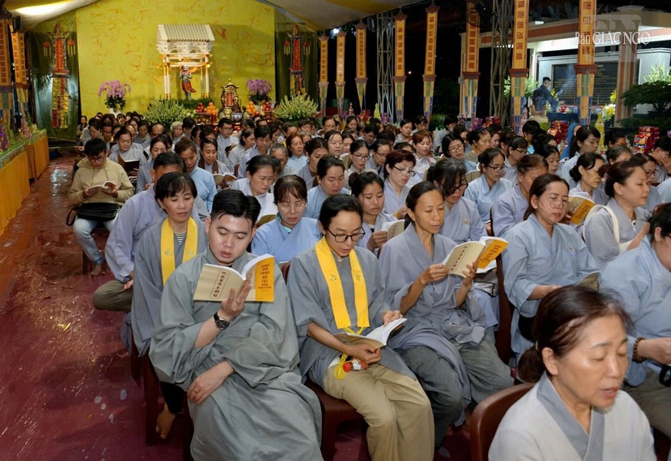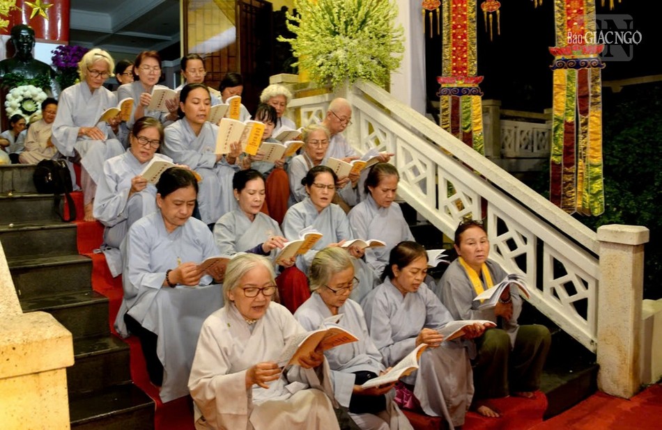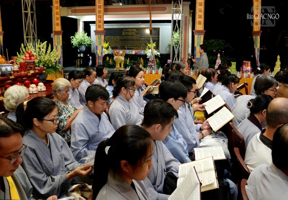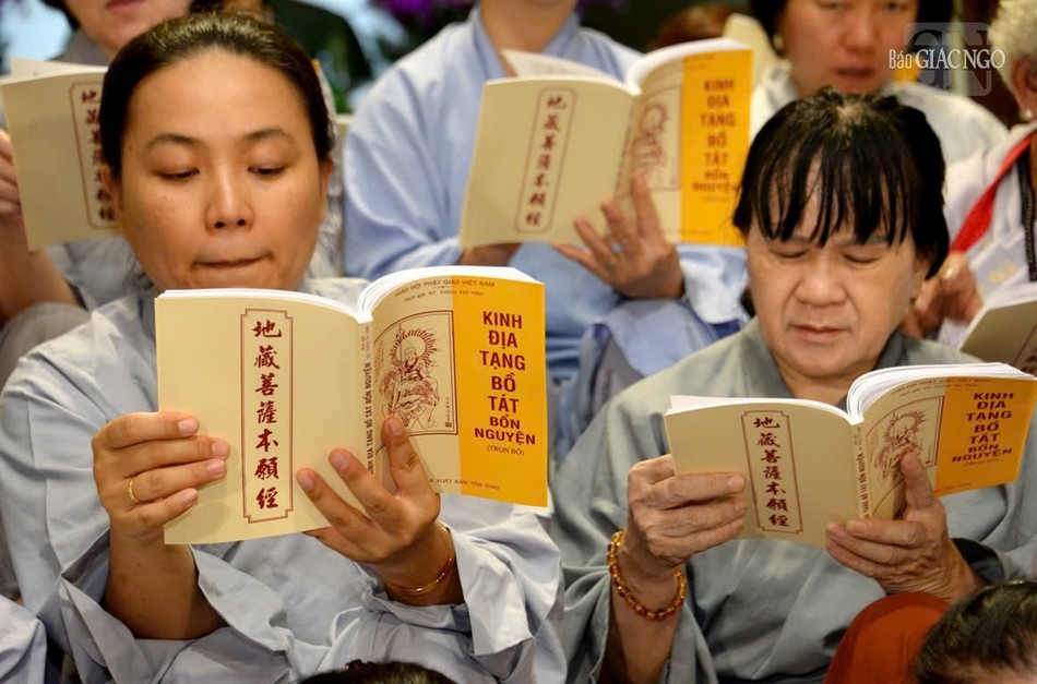 Tiếp đó, chư Tăng, Phật tử các tự viện Tịnh Thành, Việt Nam Quốc Tự, Phổ Quang tiếp tục trì tụng kinh Địa Tạng Bồ-tát bổn nguyện.