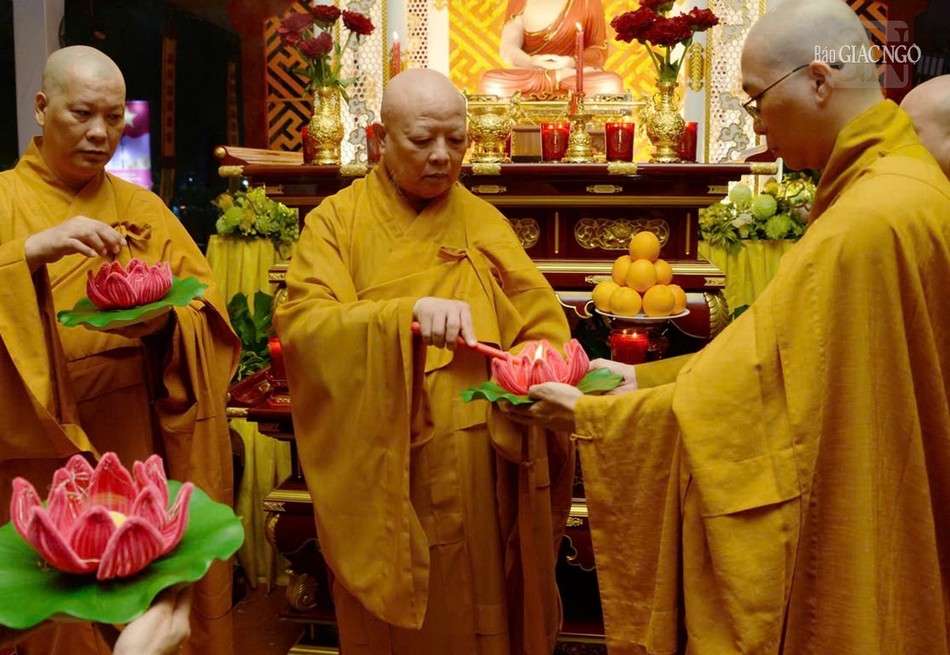 Hòa thượng Thích Lệ Trang, Phó Chủ tịch Hội đồng Trị sự, Trưởng ban Nghi lễ T.Ư, Trưởng ban Trị sự GHPGVN TP.HCM chủ trì Lễ thắp nến, hoa đăng tưởng niệm, tri ân chư anh linh các anh hùng liệt sĩ, chiến sĩ và đồng bào đã yên nghỉ tại Nghĩa trang Đô Thành cũ - nay là Công viên văn hóa Lê Thị Riêng.