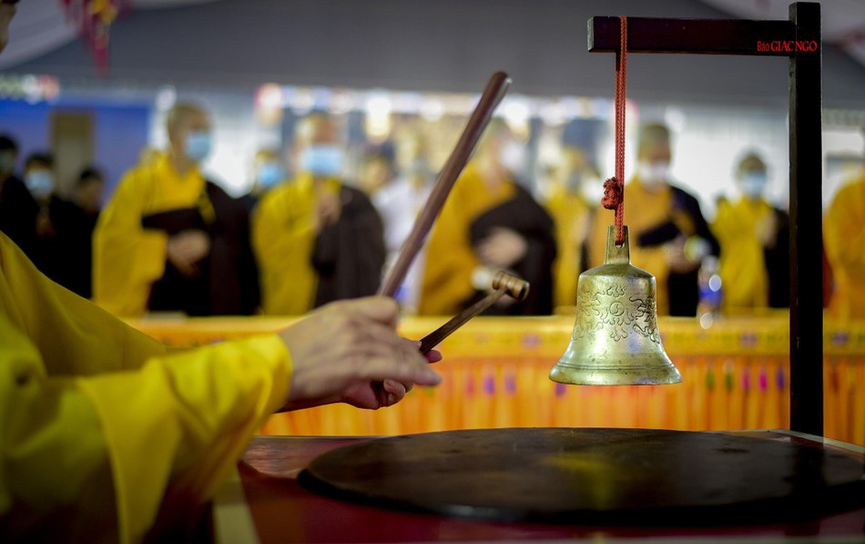GNO - Nghi thức sái tịnh, khai đàn, phụng thỉnh Tam bảo, thánh thần quang giáng chứng minh đàn tràng vừa được chư tôn đức Tăng Ni thuộc Phật giáo người Hoa cử hành tại Pháp hội Vạn Nhân Duyên ở Hội quán Nghĩa An (quận 5), chiều 1-11.