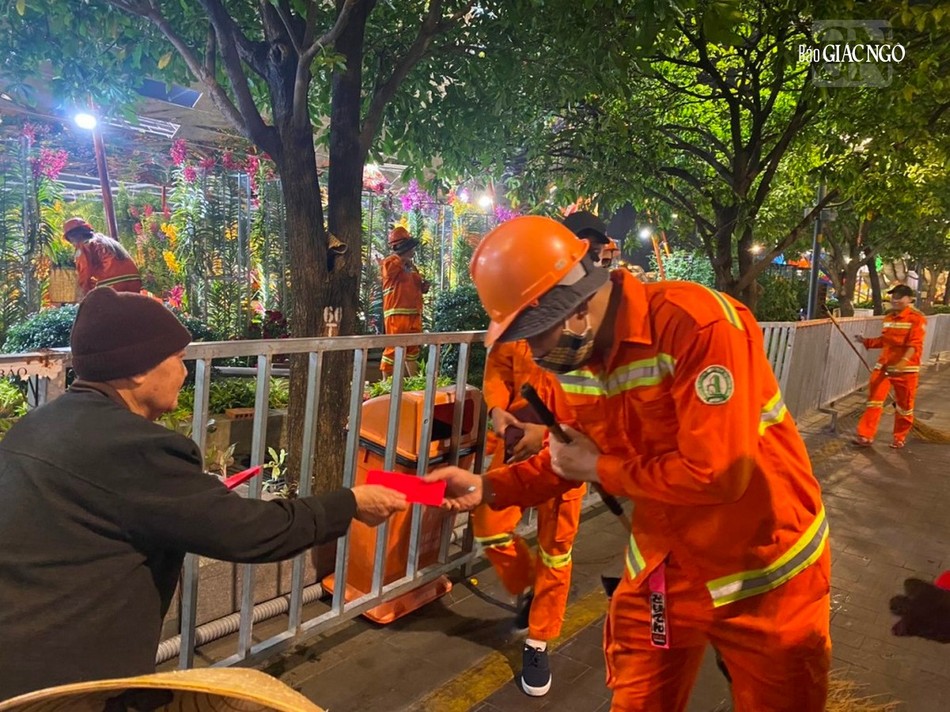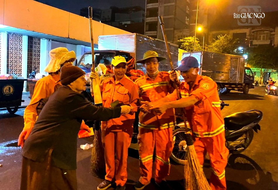 Hình ảnh xúc động với vị "Sư bà" vào rạng sáng cuối năm trở thành kỷ niệm đẹp bao năm qua của anh em công nhân môi trường mỗi dịp cuối năm.