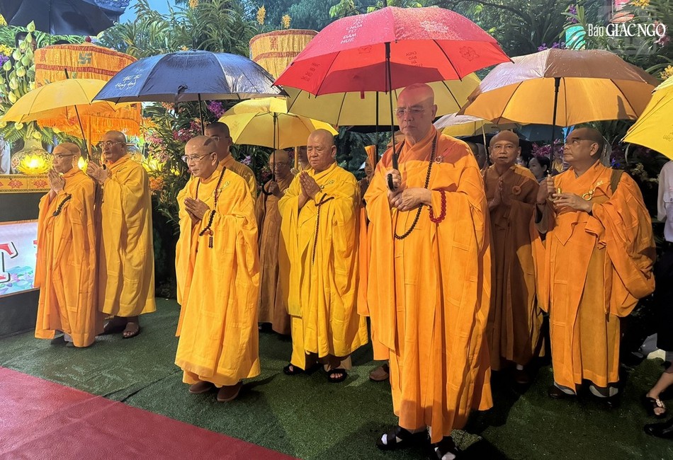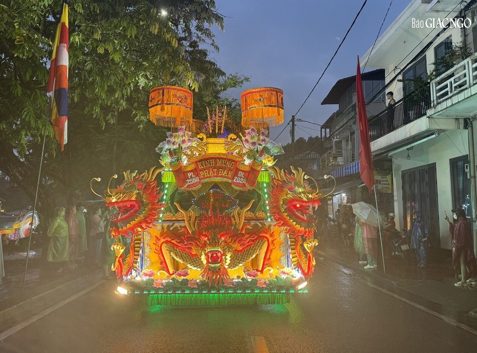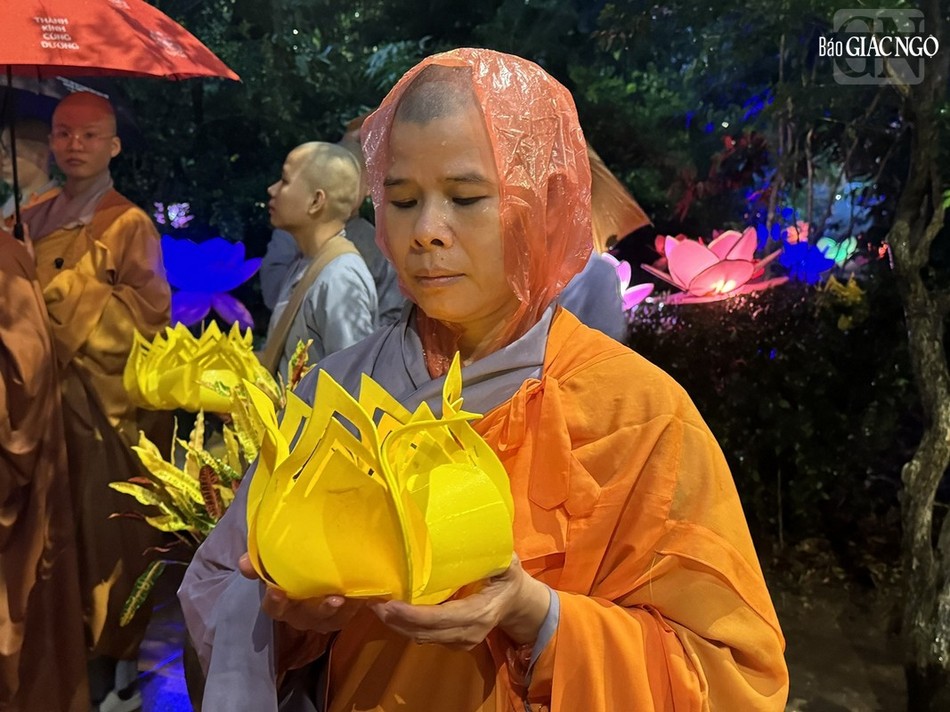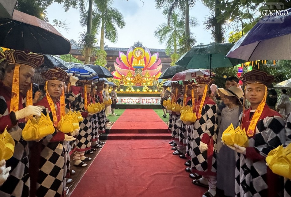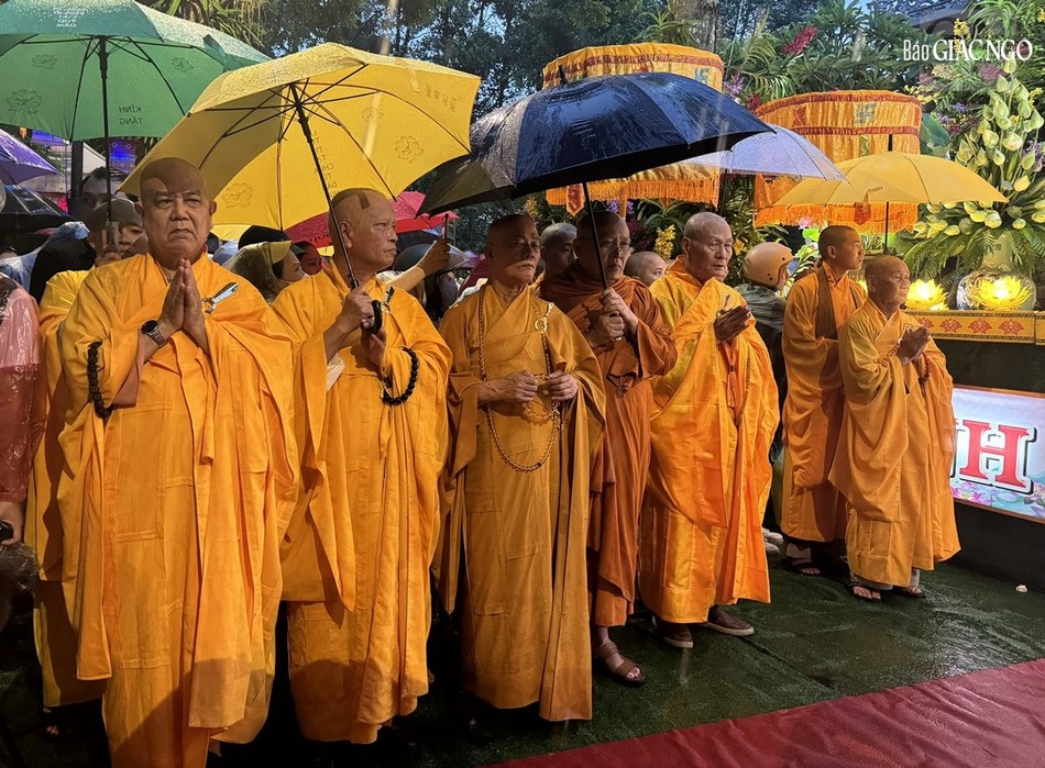Trong tiết trời mưa kéo dài và nặng hạt, nhưng Tăng Ni, Phật tử vẫn hoan hỷ mặc áo mưa, che dù để được rước Phật. Ngoài áo mưa được Ban Tổ chức chuẩn bị cho đoàn rước thì một số Phật tử đã chủ động mua áo mưa để phát cho những người tham dự lễ.