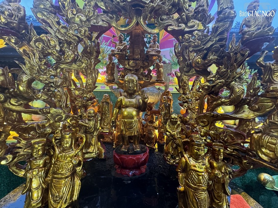 Tôn tượng Đức Phật đản sinh được tôn trí tại lễ đài tổ đình Từ Đàm sau khi rước từ Quốc tự Diệu Đế