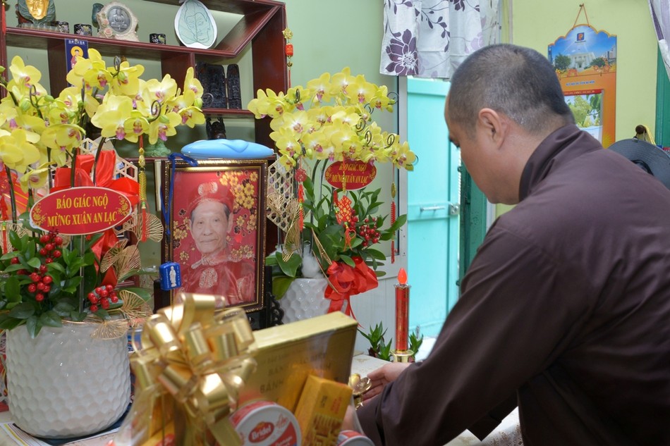 Cùng ngày, Thượng tọa Tổng Biên tập đã hướng dẫn phái đoàn đến tư gia cố Cư sĩ Tâm Bửu Tống Hồ Cầm thắp hương tưởng niệm vị nhân sĩ, Phật tử có những đóng góp cho Phật giáo, là một trong những vị gắn bó với Báo Giác Ngộ từ ngày thành lập cùng với cố Cư sĩ Võ Đình Cường - Tổng Biên tập đầu tiên của báo.