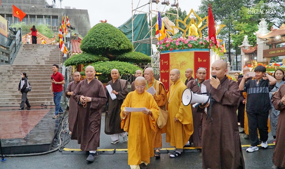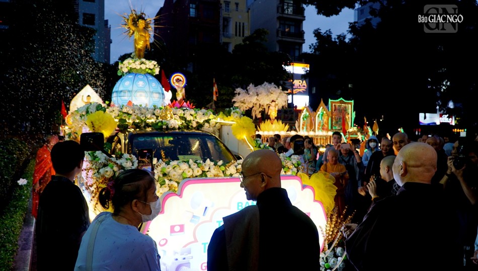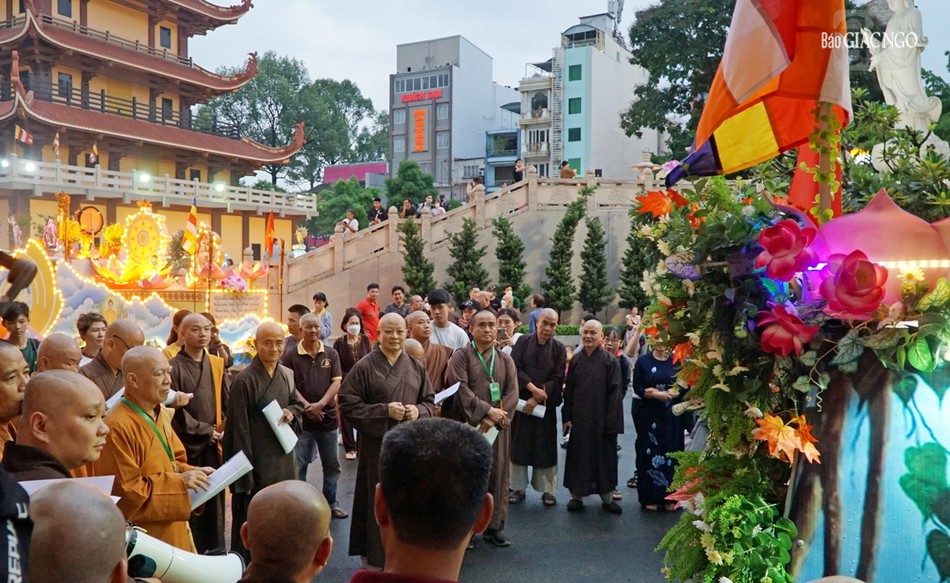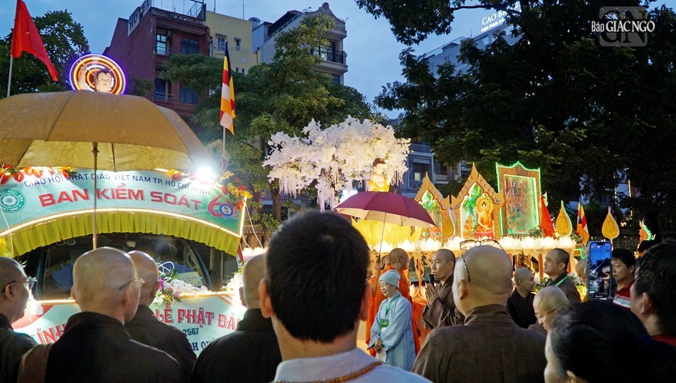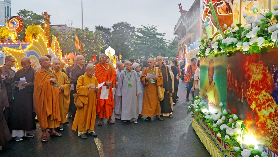 Đoàn xe hoa 17 chiếc gồm: Văn phòng Ban Trị sự TP.HCM, xe hoa các ban: Tăng sự, Giáo dục Phật giáo, Hướng dẫn Phật tử, Hoằng pháp, Nghi lễ, Ban Văn hóa, Kinh tế - Tài chính, Từ thiện xã hội, Phật giáo Quốc tế, Thông tin - Truyền thông, Pháp chế, Kiểm soát, Phân ban Ni giới, Báo Giác Ngộ, Phật giáo Nam tông Khmer, Phật giáo Khất sĩ.