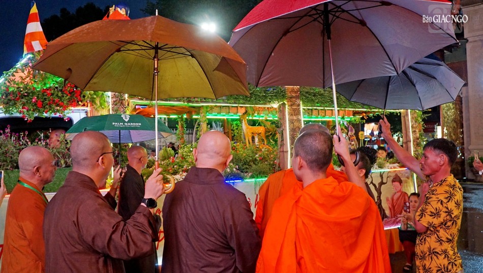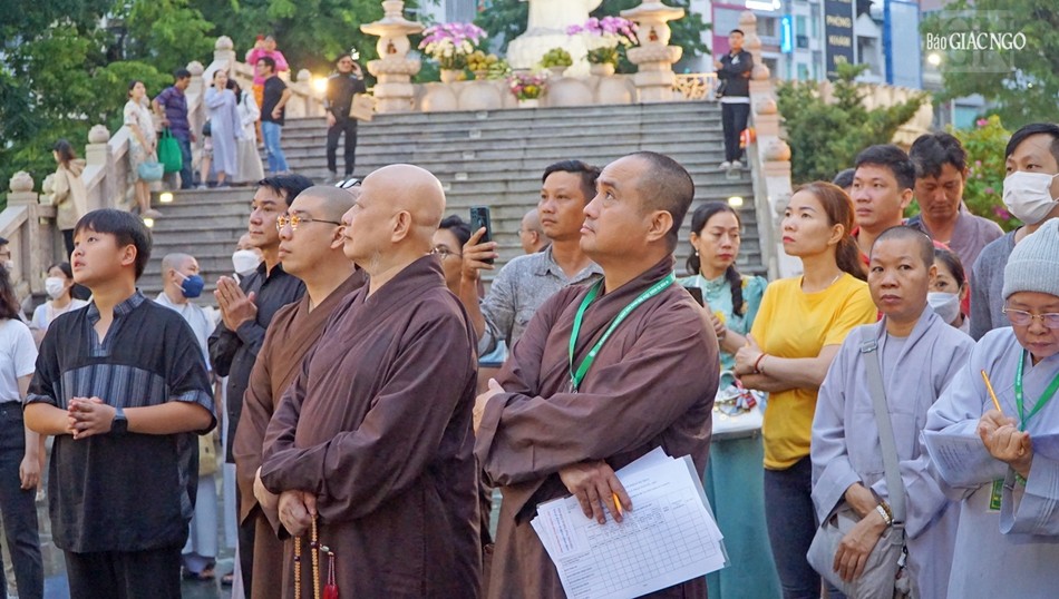 Đúng 17 giờ 30, tại lễ đài Phật đản chính của Phật giáo TP.HCM - Việt Nam Quốc Tự, nơi tập kết xe hoa, với sự chứng minh của Hòa thượng Thích Lệ Trang, Ủy viên Thường trực Hội đồng Trị sự, Trưởng ban Trị sự GHPGVN TP.HCM, Trưởng ban Tổ chức Đại lễ, chư tôn đức Ban Giám khảo lần lượt chấm điểm xe hoa theo các thang điểm và các tiêu chí được Ban Giám khảo thống nhất trước đó.