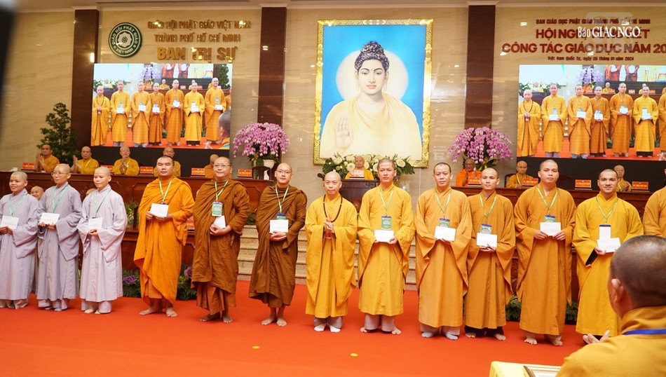 Nhằm kịp thời hỗ trợ cho Tăng Ni sinh các cấp Phật học, tại hội nghị, Ban Giáo dục Phật giáo TP.HCM đã trao học bổng với tổng trị giá 207 triệu đồng, gồm tặng đến 5 vị nghiên cứu sinh (5 triệu đồng/ học bổng), 10 vị thạc sĩ (5 triệu đồng/học bổng), 6 vị Tăng Ni sinh Cao đẳng (3 triệu đồng/ học bổng), 30 vị Tăng Ni sinh trung cấp (3 triệu đồng/ học bổng), 12 vị Tăng Ni sinh sơ cấp (2 triệu đồng/ học bổng).