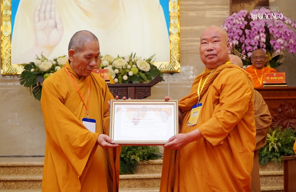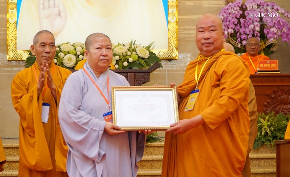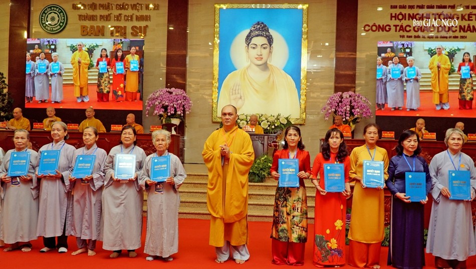 Dịp này, Ban Trị sự GHPGVN TP.HCM có quyết định trao Bằng tuyên dương công đức và Bằng công đức đến 29 tập thể và cá nhân thuộc Ban Giáo dục Phật giáo TP.HCM đã tích cực trong hoạt động Phật sự năm 2023; Ban Giáo dục Phật giáo TP.HCM cũng trao quyết định đến một số thành viên Ban Bảo trợ trực thuộc.