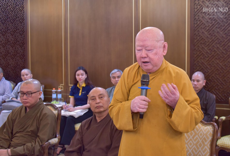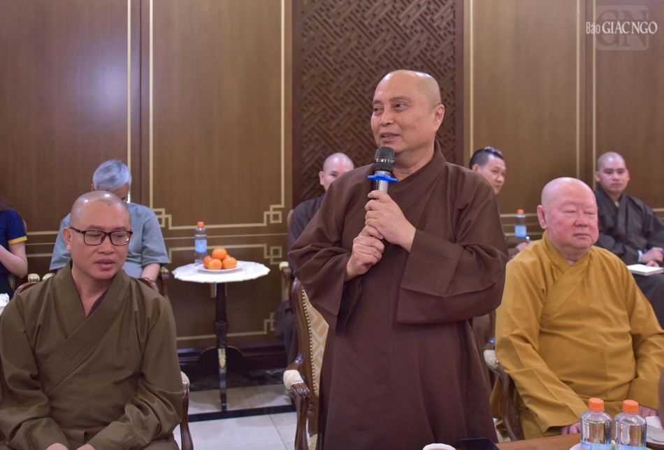 Thượng tọa Thích Trung Sơn, Phó ban Kinh tế - Tài chính T.Ư, Phó ban phụ trách Ẩm thực đại biểu thuộc Ban Hậu cần Đại lễ Vesak Liên Hiệp Quốc 2025 đại diện báo cáo công tác chuẩn bị, kế hoạch phục vụ đại biểu,... đến các thành viên trong ban. Theo đó, trong suốt thời gian diễn ra Đại lễ Vesak Liên Hiệp Quốc 2025 tại TP.HCM, Ban Hậu cần dự kiến sẽ phục vụ cho hơn 10.000 thực khách mỗi ngày, bao gồm các đại biểu tham dự khắp nơi trên thế giới và khách tham quan.