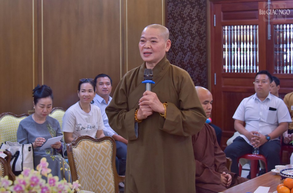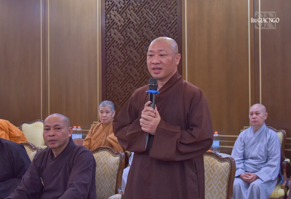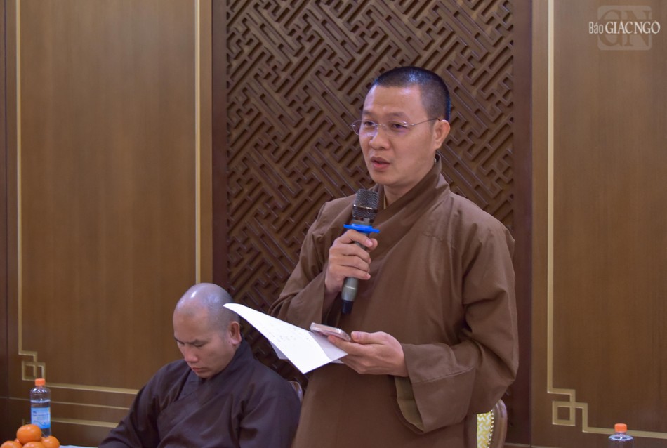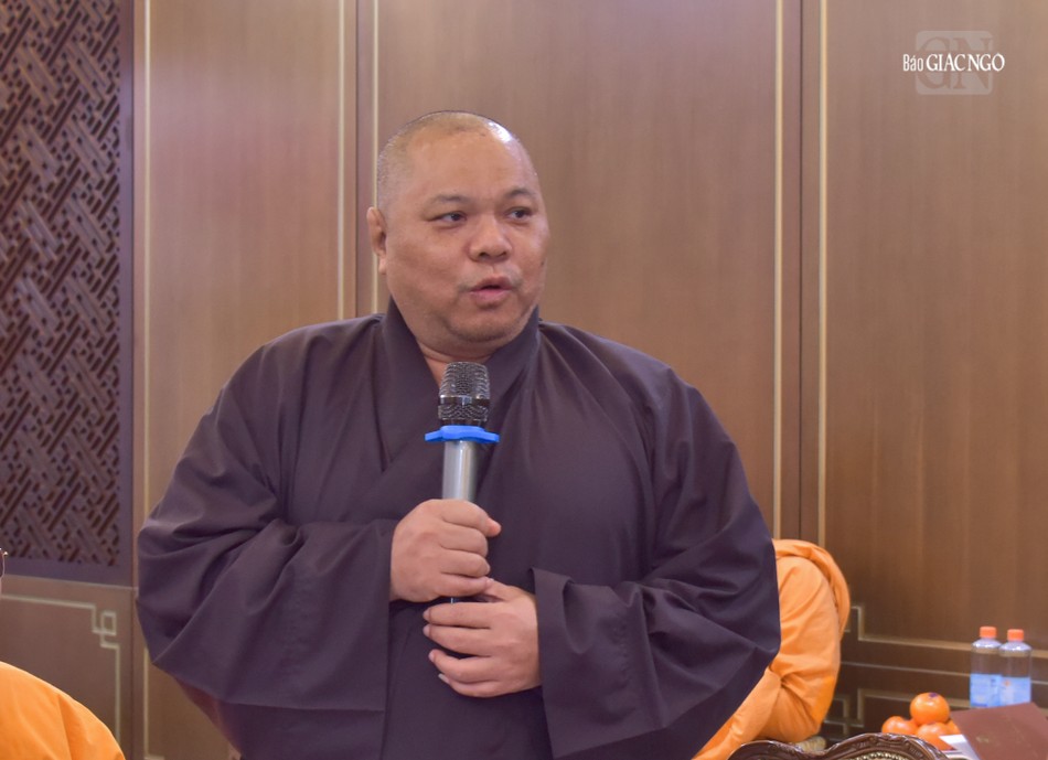 | Thượng tọa Thích Trung Sơn báo cáo công tác chuẩn bị của Ban Hậu cần Đại lễ Vesak Liên Hiệp Quốc 2025 |