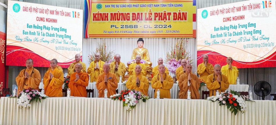 Tiếp đoàn tại chùa Vĩnh Tràng (TP.Mỹ Tho, tỉnh Tiền Giang) có Thượng tọa Thích Quảng Lộc, Trưởng ban Trị sự GHPGVN tỉnh Tiền Giang; Hòa thượng Thích Giác Nhân, Phó ban Trị sự GHPGVN tỉnh; cùng Ban Thường trực Ban Trị sự GHPGVN tỉnh, Ban Chức sự các trường hạ và hành giả an cư trên địa bàn tỉnh.