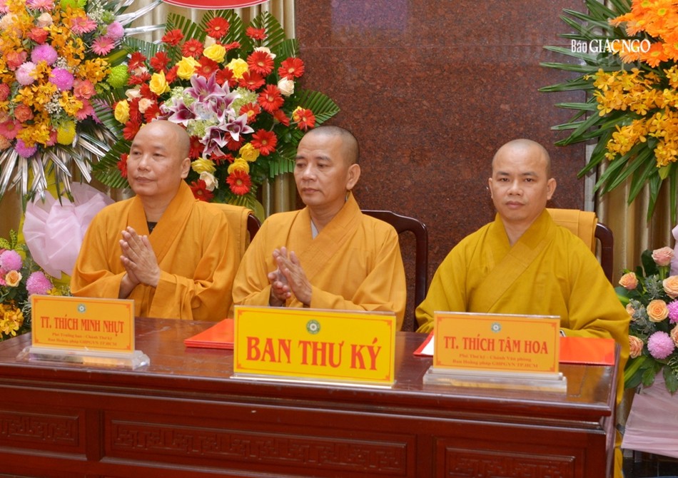 Chứng minh, tham dự hội nghị với sự hiện diện của chư vị giáo phẩm chứng minh: Trưởng lão Hòa thượng Thích Như Tín, Ủy viên Thường trực Hội đồng Chứng minh, Chứng minh Ban Trị sự TP.HCM, cùng chư tôn giáo phẩm Thành viên Hội đồng Chứng minh, chứng minh, cố vấn Ban Trị sự GHPGVN TP.HCM, Chứng minh Ban Hoằng pháp; Hòa thượng Thích Thiện Tánh, Phó Chủ tịch Hội đồng Trị sự; chư vị Phó ban Trị sự: Hòa thượng Thích Giác Pháp, Thượng Thích Nhật Từ, Hòa thượng Thích Nhật Hỷ (kiêm Trưởng ban Hoằng pháp GHPGVN TP.HCM, Trưởng ban Tổ chức), Thượng tọa Thích Thiện Quý (Chánh Thư ký ban Trị sự, Phó Thường trực ban Hoằng pháp), Đại đức Thích Trí Đức, Phó Thư ký Ban Trị sự TP.HCM, chư vị Trưởng các ban chuyên môn, Tăng Ni, Phật tử các đạo tràng.