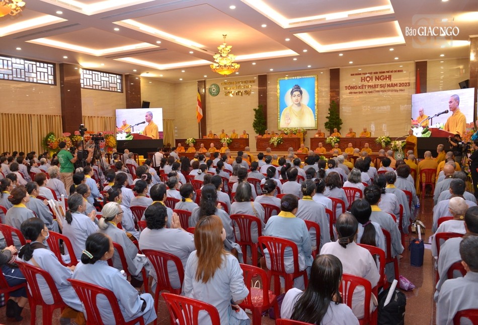 Hội nghị được xem video clip ghi nhận những hoạt động Phật sự năm 2023 của Ban Hoằng pháp tại hội nghị. Theo đó, sau khi Ban Hoằng pháp ra mắt nhân sự và có buổi họp với 128 giảng sư, trong đó, Giảng sư Ban Hoằng pháp TP.HCM có 55 vị, Giảng sư đoàn Ban Hoằng pháp Thành phố có 73 vị, được phân công thuyết giảng tại 269 đạo tràng, trong đó có 8 giảng đường trung tâm, 12 đạo tràng Bát Quan trai và 5 lớp giáo lý tu học hàng tuần, 244 đạo tràng tu học 1 tháng/ kỳ; tổ chức 2.918 buổi giảng Phật pháp tại các đạo tràng gồm 264 buổi giảng online.