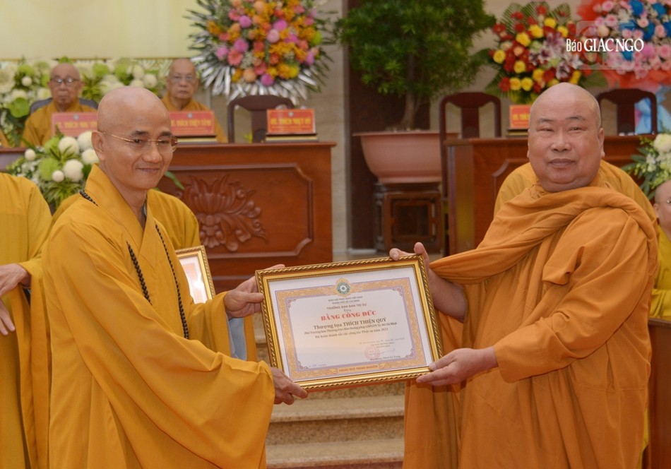 Thay mặt Ban Tổ chức, Thượng tọa Thích Thiện Quý, Phó Thường trực Ban Hoằng pháp phát biểu cảm tạ, kết thúc hội nghị.
