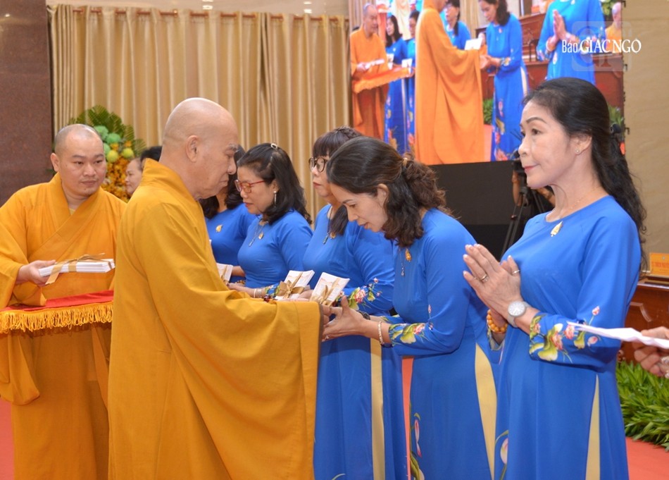 Dịp này, Đại đức Thích Thiện Châu, Phó Văn phòng Ban Trị sự thay mặt Ban Trị sự GHPGVN TP.HCM công bố quyết định tặng Bằng tuyên dương công đức và công đức đến 27 tập thể và cá nhân Ban Hoằng pháp GHPGVN TP.HCM đã hoàn thành hoạt động Phật sự trong năm 2023; Ban Hoằng pháp trao Bằng công đức cho Phật tử Ngày an lạc và các đạo tràng; đại diện các đạo tràng, Phật tử Hoa Huệ phát biểu cảm tưởng, tri ân chư tôn đức Ban Hoằng pháp GHPGVN TP.HCM.