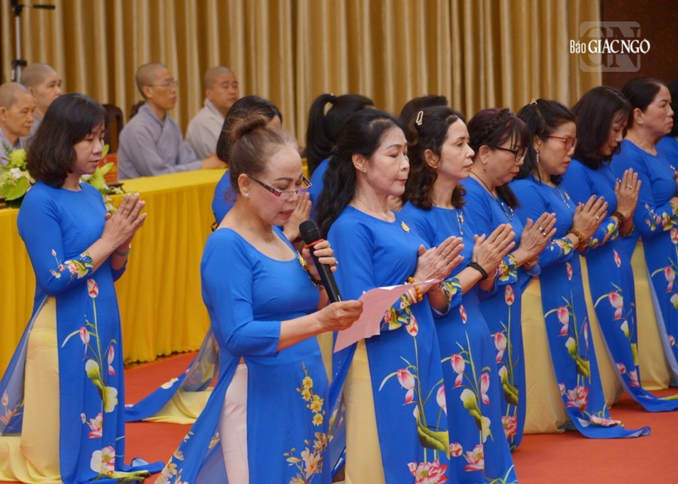 Đại đức Thích Trí Đức, Phó Thư ký Ban Trị sự thay mặt Ban Trị sự GHPGVN TP.HCM đọc quyết định chuẩn y điều chỉnh chức danh và bổ sung nhân sự của Ban Hoằng pháp GHPGVN TP.HCM khóa X (2022-2027) do Hòa thượng Thích Lệ Trang, Trưởng ban Trị sự GHPGVN TP.HCM ấn ký.